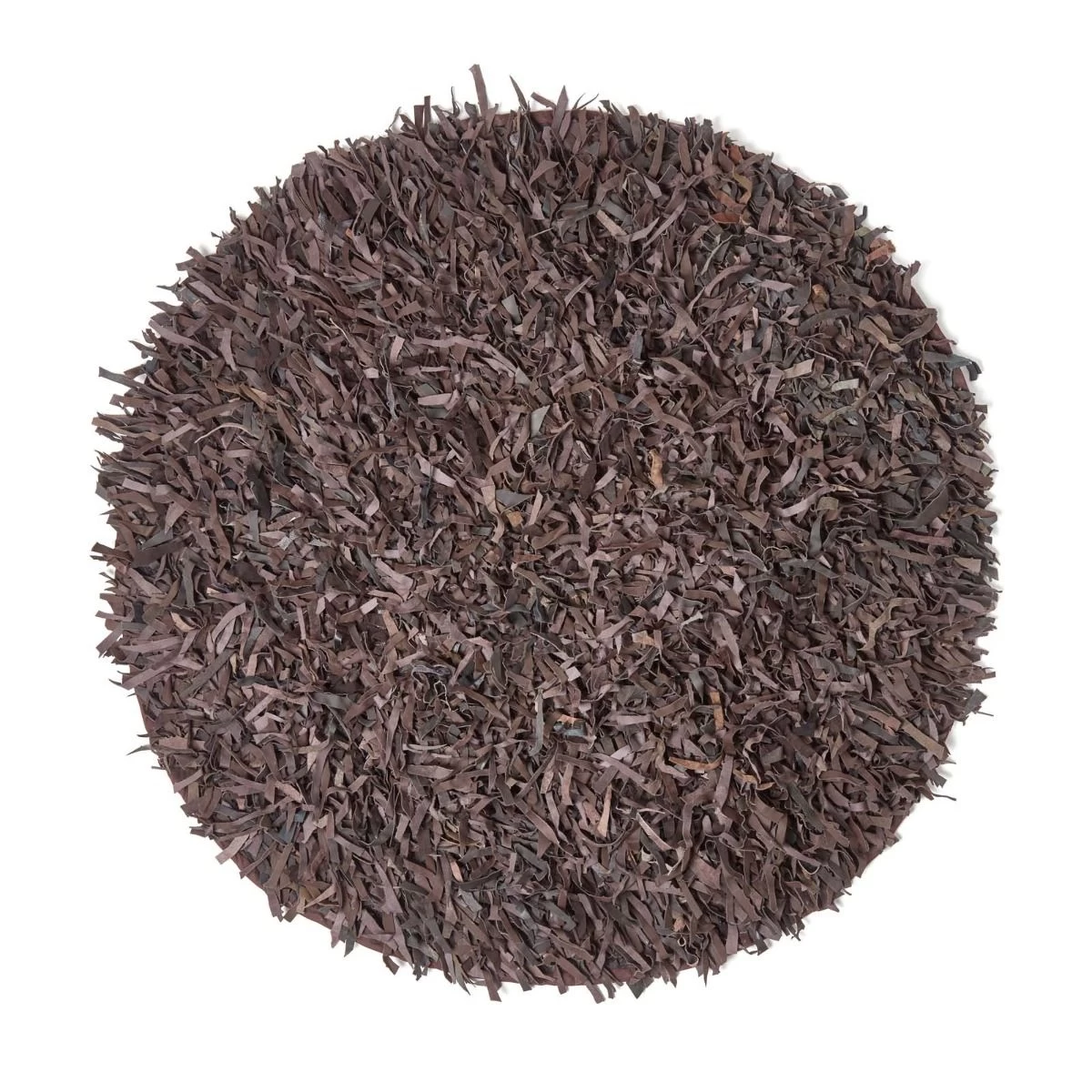 Dallas Leather Shaggy Rug Chocolate, 150 Cm Round