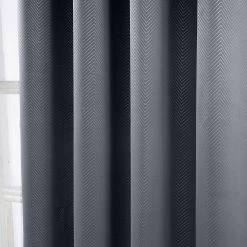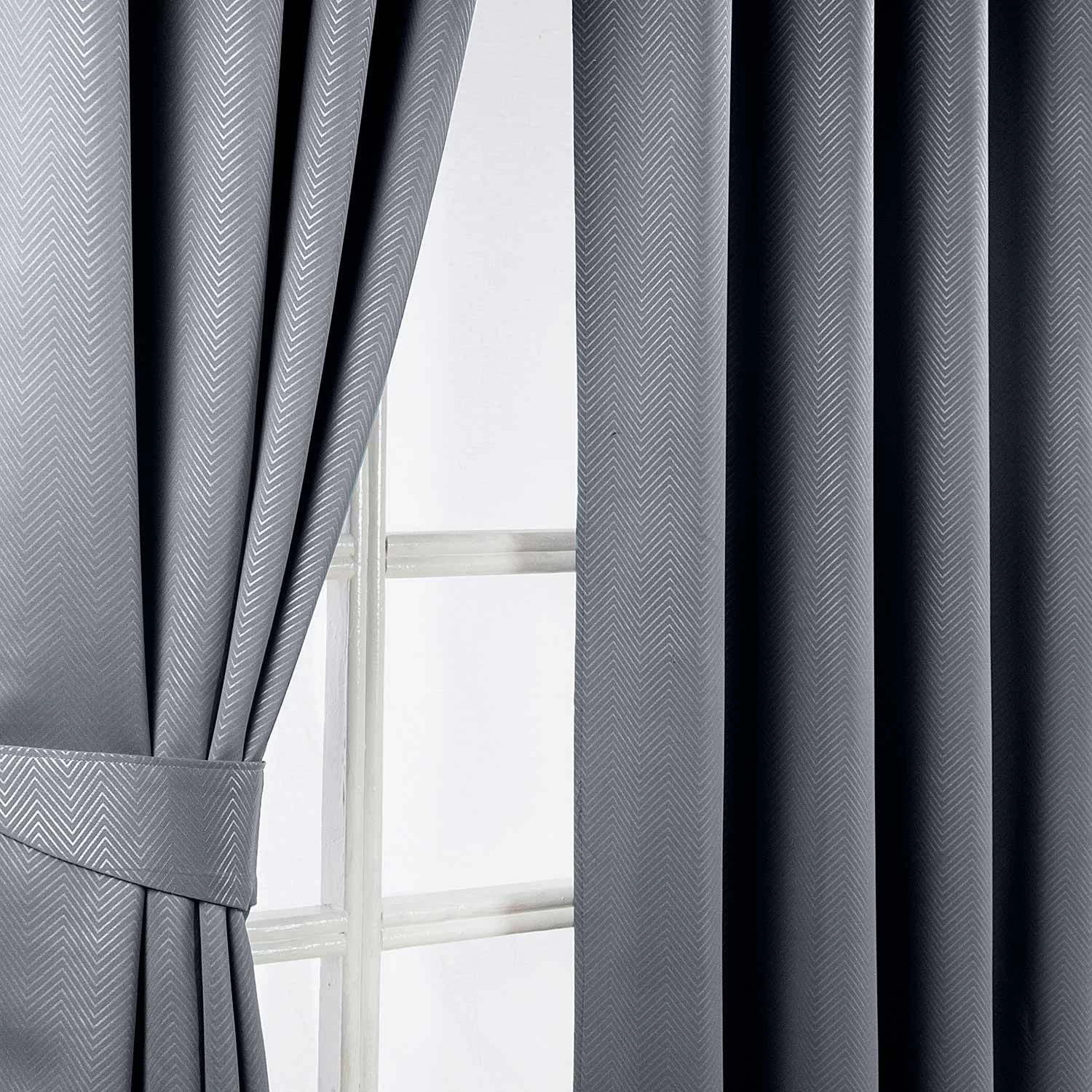 Homescapes dark grey eyelet curtains are exclusively designed to be a contemporary and stylish addition to any room, their thermal and blackout lining retaining heat and blocking out light. The dark grey herringbone chevron pattern is a modern and versatile look that can be paired with matching tie backs or cushion covers.