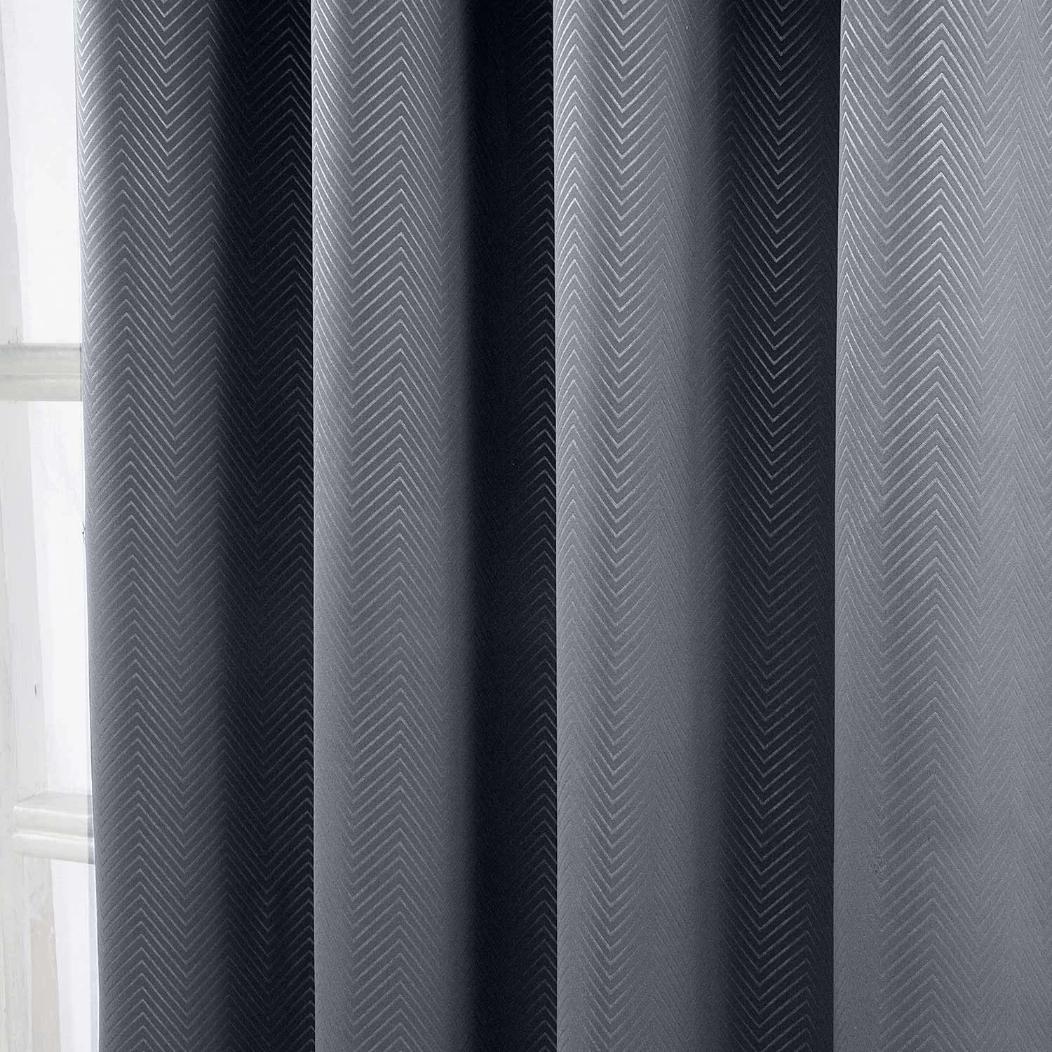 Homescapes dark grey herringbone chevron thermal curtains, a stylish pair of plain curtains with a contemporary style eyelet heading, ideal for living rooms and bedrooms.