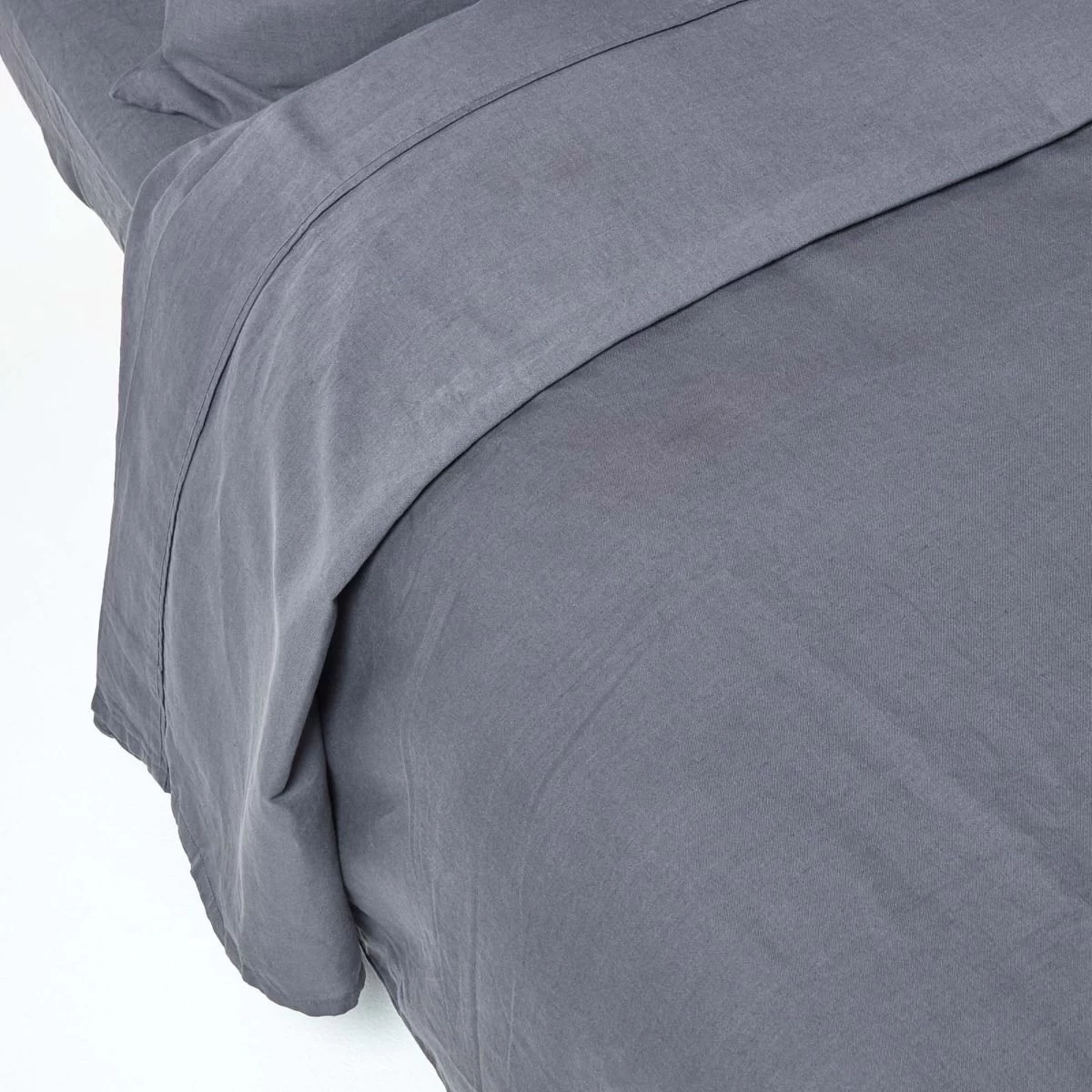 Luxury Linen flat sheet woven from a specific blend of fine French flax linen and premium combed cotton to create an ultra-soft dark grey linen sheet that is highly breathable and temperature regulating. Perfect for summer sleeping, our linen bed linen will leave you feeling cool and fresh as you sleep. Pair with the dark grey duvet cover set in winter to add an additional layer of warmth to your bed.