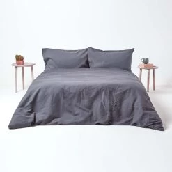 Luxurious dark grey Housewife pillowcase from the linen bed linen collection at Homescapes. Pair with the matching dark grey linen duvet cover set. Woven from a luxurious blend of French flax linen and soft combed cotton, this breathable linen pillowcase is kind and gentle on skin. With an envelope closure, this dark grey housewife pillowcase gets softer with every wash.