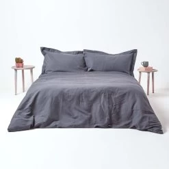Oxford style linen pillowcase from Homescapes’ luxury range of linen bed linen. In dark grey, pair this pillowcase with the matching grey linen duvet cover or mix with other linen bed sheets from the collection. Woven from a unique blend of French flax linen and premium combed cotton to create a softer alternative to pure linen bedding.