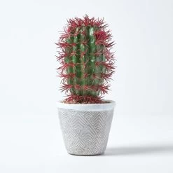 Artificial Denmoza Rhodacantha cactus from Homescapes set inside its own decorative patterned pot. Measures approximately 25 cm.