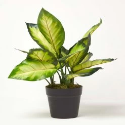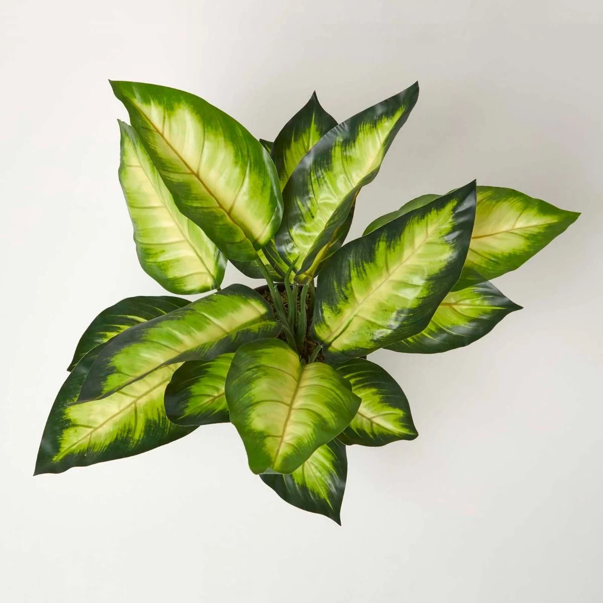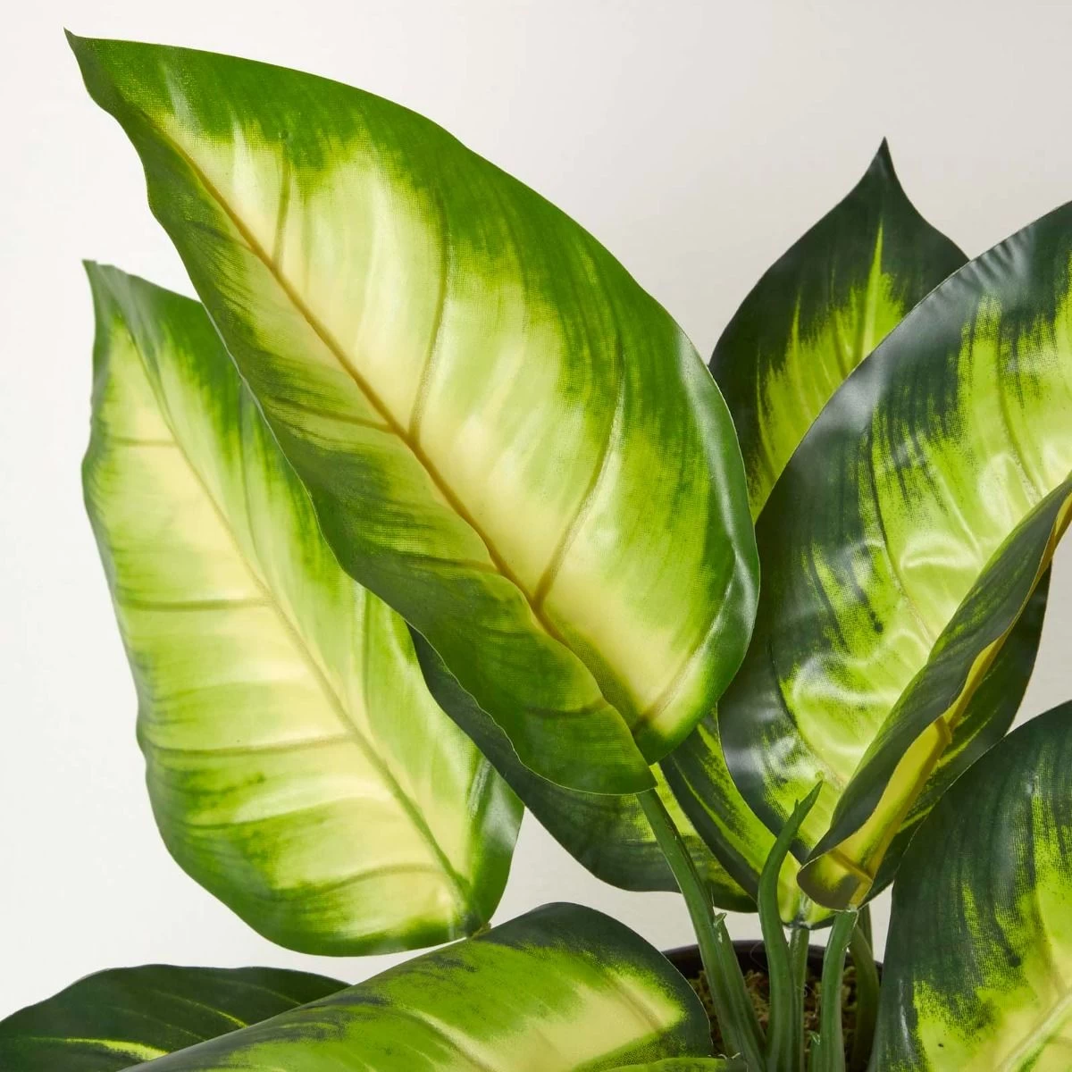 Measuring 50 cm tall, this lifelike dieffenbachia faux plant will add a burst of green to any home. Hand carved from a thick and durable polyfibre, these large leaves are just like the real thing and are finished in a yellow-green and deep green colour. Otherwise known as the dumb cane plant, this easy to maintain faux tropical plant will remain vibrant all year through and can be styled among real and artificial plants for the perfect look.