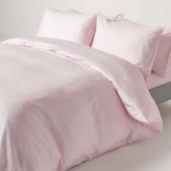 Homescapes luxurious, satin stripe flat sheet in dusky pink violet will bring a contemporary and modern look to any bedroom, woven from super soft pure Egyptian cotton
