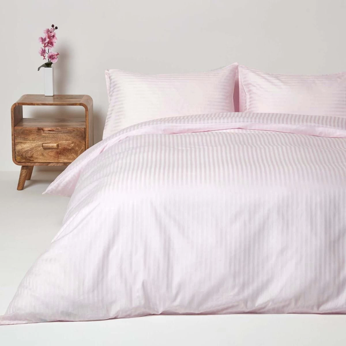 Our Dusky Pink Violet 330 Thread Count Satin Stripe Egyptian Cotton Duvet Cover Set is the perfect addition to any bedroom that needs a little hotel quality luxury.