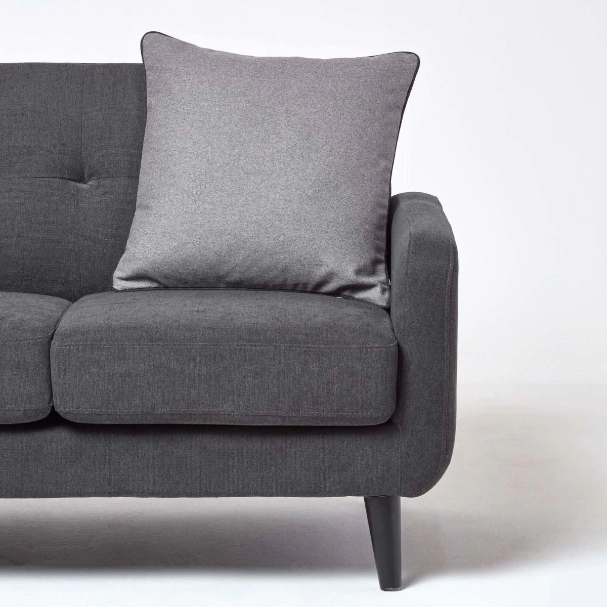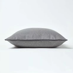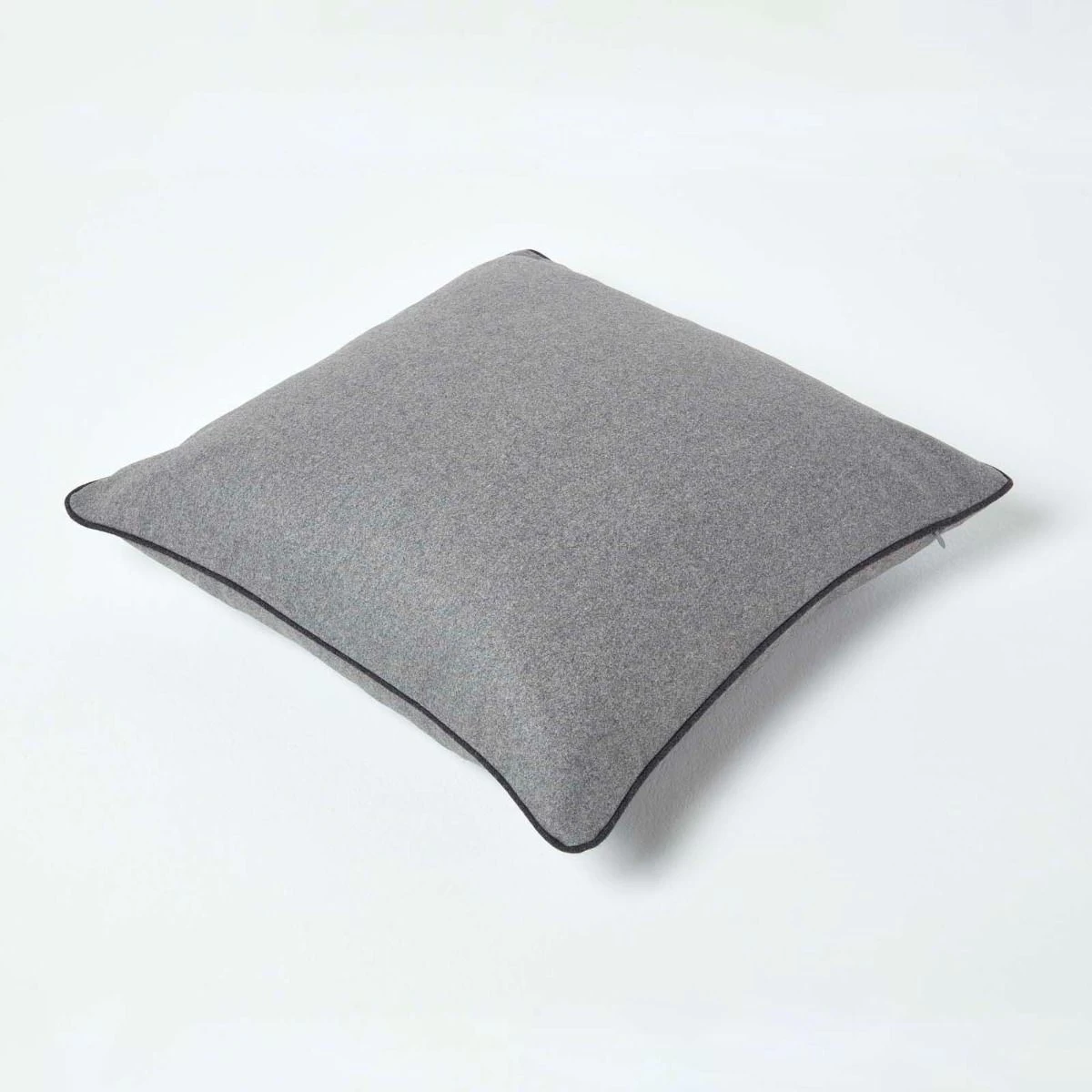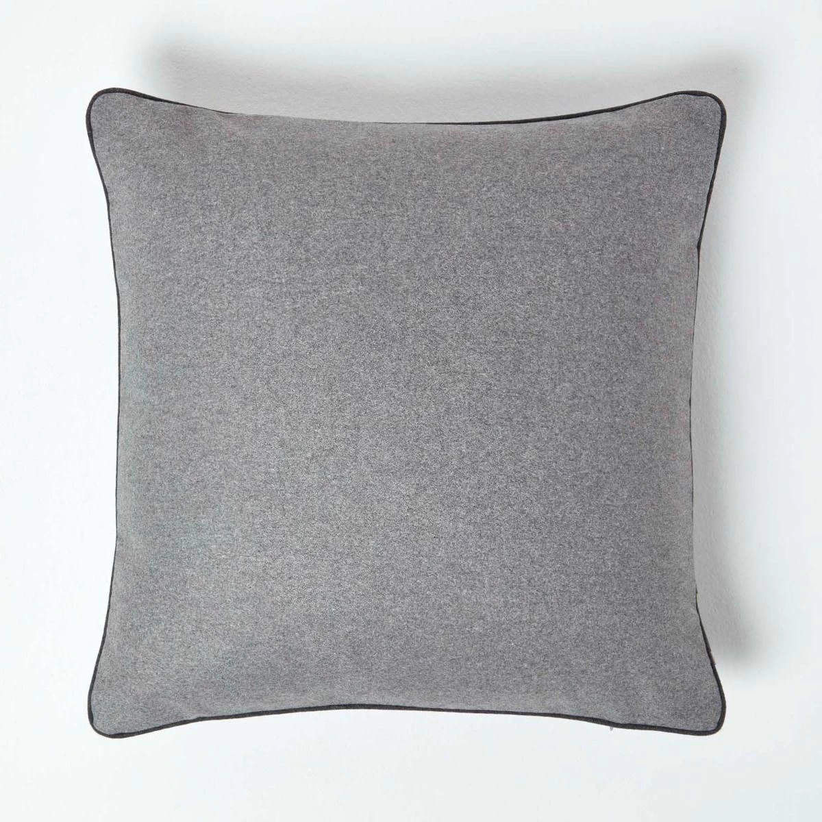 Large 50 x 50 cm grey cushion, plain grey felt style scatter cushion with piped edging, co-ordinating grey cushion for sofa and bed decoration.