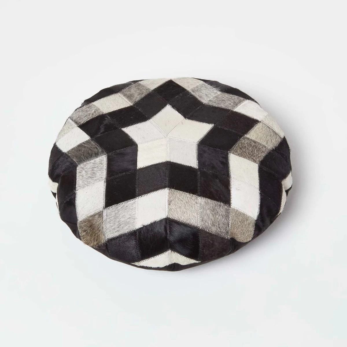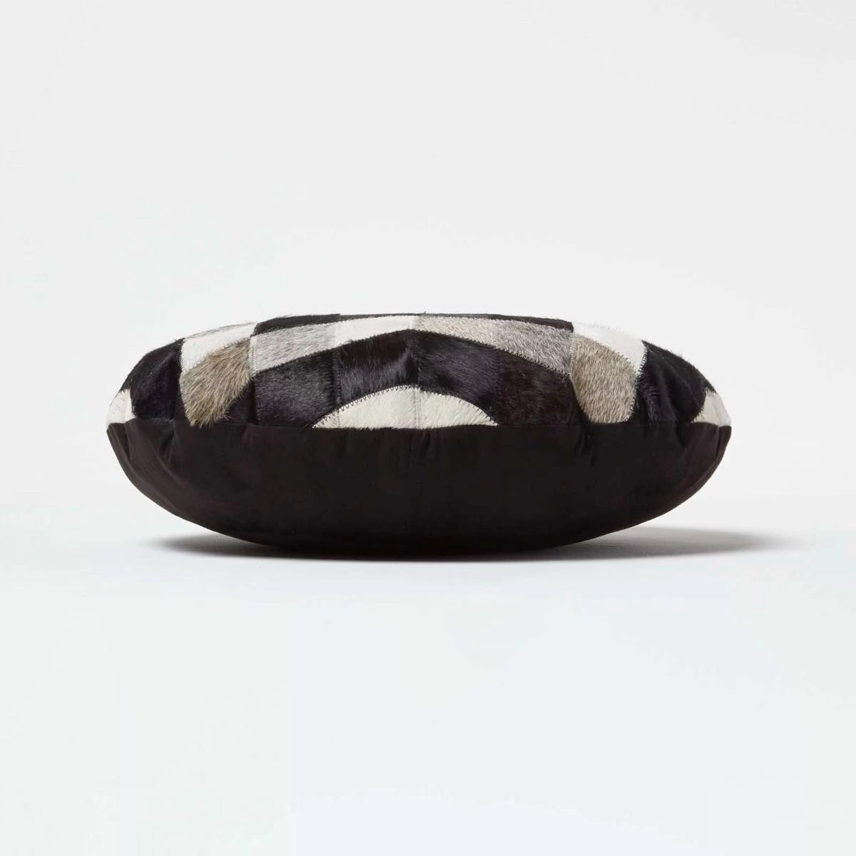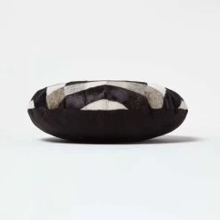 A stylish and round genuine leather cushion with an on-trend star design. Handcrafted from natural hide in shades of black, brown and grey, this textured cushion also features a plain black suede reverse. Easy to style, this modern cushion will complement modern and traditional interior styles and is ideal for bedroom and living room settings.