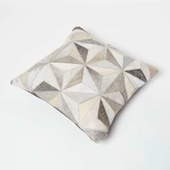 Crafted for comfort and style, this generously filled sofa cushion has a patchwork star leather hide front in shades of grey and cream. A textured cushion featuring an on-trend geometric design with a plain grey suede reverse, it’s the ideal statement piece for your living space or bedroom. Due to the natural materials used, each leather cushion may appear slightly different than the images shown.