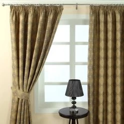 Golden Glamour This jacquard weave design features ornate, Aztec-inspired motifs encased in grid-like tiles. In a selection of lustrous, natural and gold tones, these ornate curtains are ideal for adding warmth and glamour to a neutral room scheme.