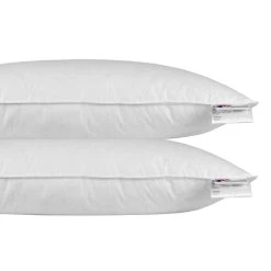 Homescapes Goose Feather and Down continental sized pillow pair measuring 40cm x 80cm wide, European sized extra wide pillow encased within 100% crisp cotton.