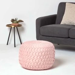 A timeless addition to any home, this pale pink pouffe combines the luxury feel of velvet with a must-have colour. Handcrafted and pleated around the edge, the unique pin tuck design is finished with an oversized button on the top and base. Pair with Homescapes’ matching pink Grace cushion for a complementing look.