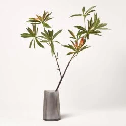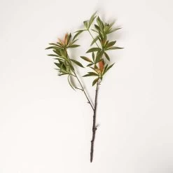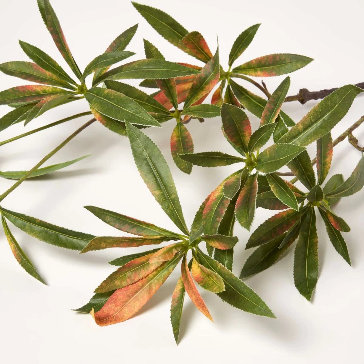 To craft a truly unique arrangement of flowers, you can pair the single stem Elaeocarpus leaves with Homescapes’ variety of flower stems to create a colourful look. The faux Elaeocarpus are an ideal base for custom arrangements and bouquets, and are great for complimenting the colours of other flowers. To care for your faux arrangement, simply wipe with a soft cloth as needed to remove any dust.