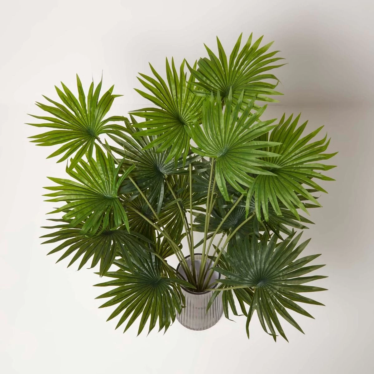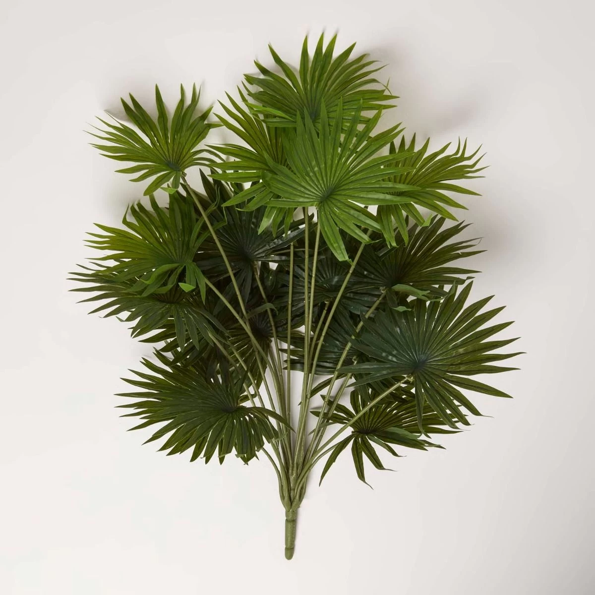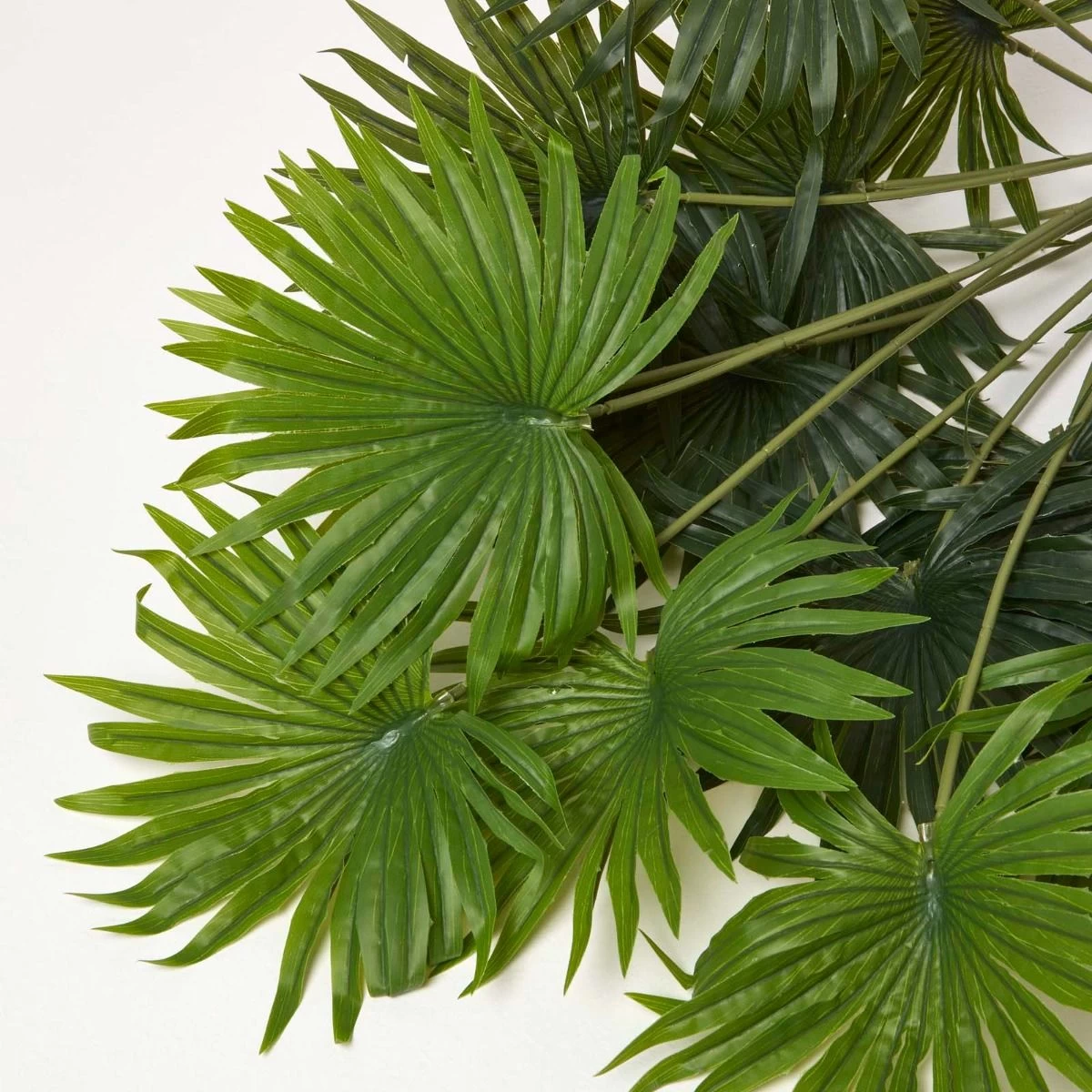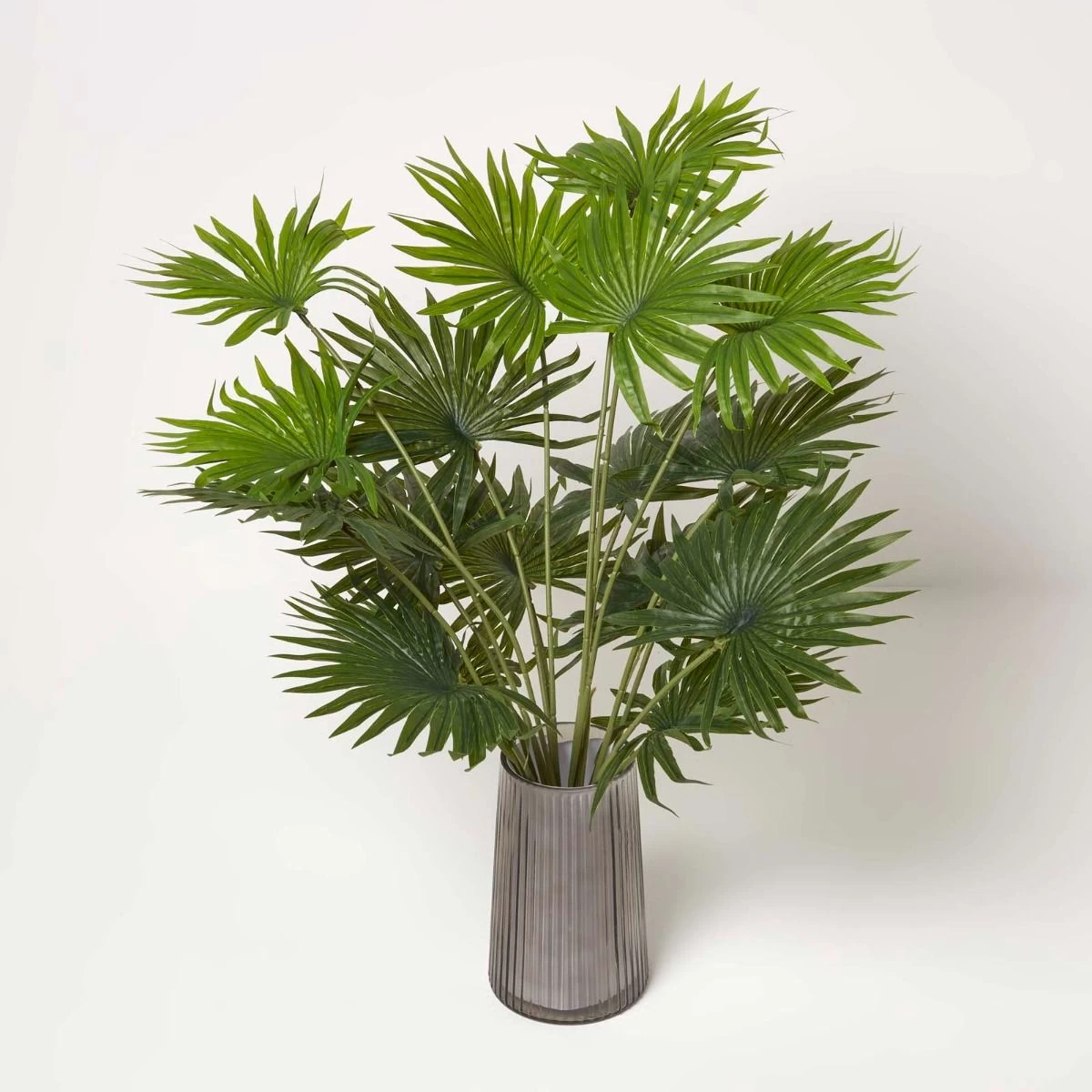 Single stem artificial palm leaf by Homescapes. Each large stem of faux fan palm leaves measures 68 cm long and has a luxury long stem that can be cut to size.