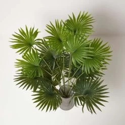 To craft a truly unique arrangement of flowers, you can pair the single stem fan palm leaves with Homescapes’ variety of flower stems to create a colourful look that lasts. The faux leaves are an ideal base for tropical arrangements and bouquets, and adds an exotic summer touch. To care for your faux arrangement, simply wipe with a soft cloth as needed to remove any dust.