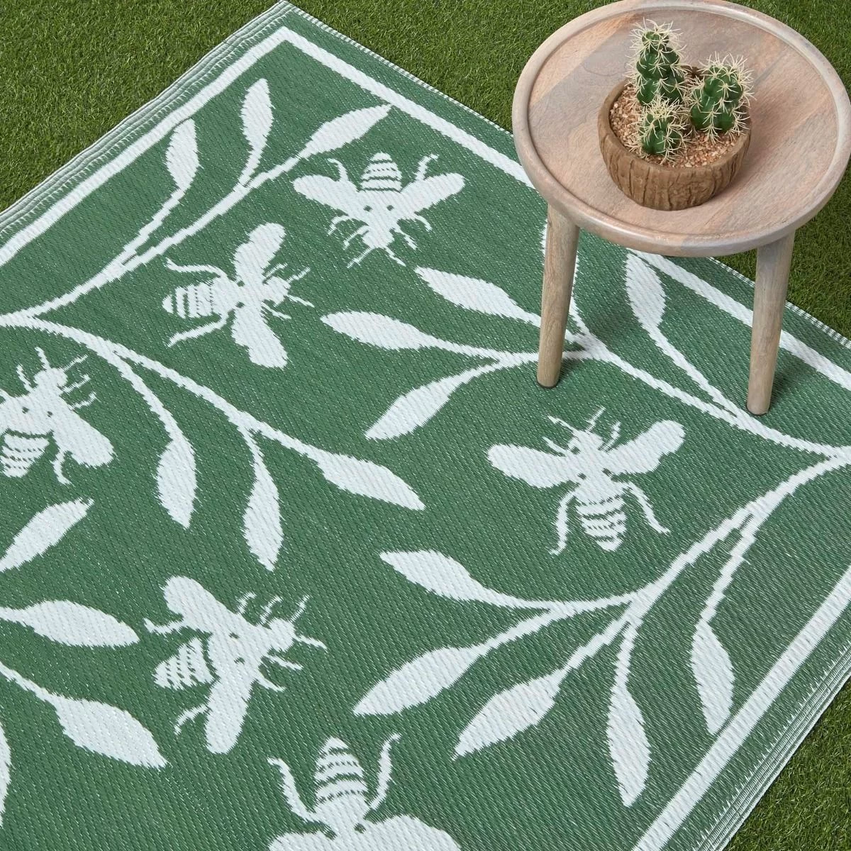 Join the popular bee trend with this mint green and white outdoor rug. The perfect garden rug to use all-year round, this colourful piece will brighten all outdoor spaces.