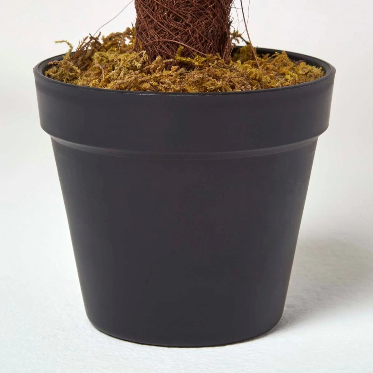 Measuring 70 cm tall, this small miniature palm tree decoration is perfect for adorning your coffee table or sideboard, or why not use it as an exciting accent on a bathroom shelf? Set in a plain black pot, this plant has a faux-moss base which leads up to a wispy stalk, fanning into large spreads of trademark slim leaves.