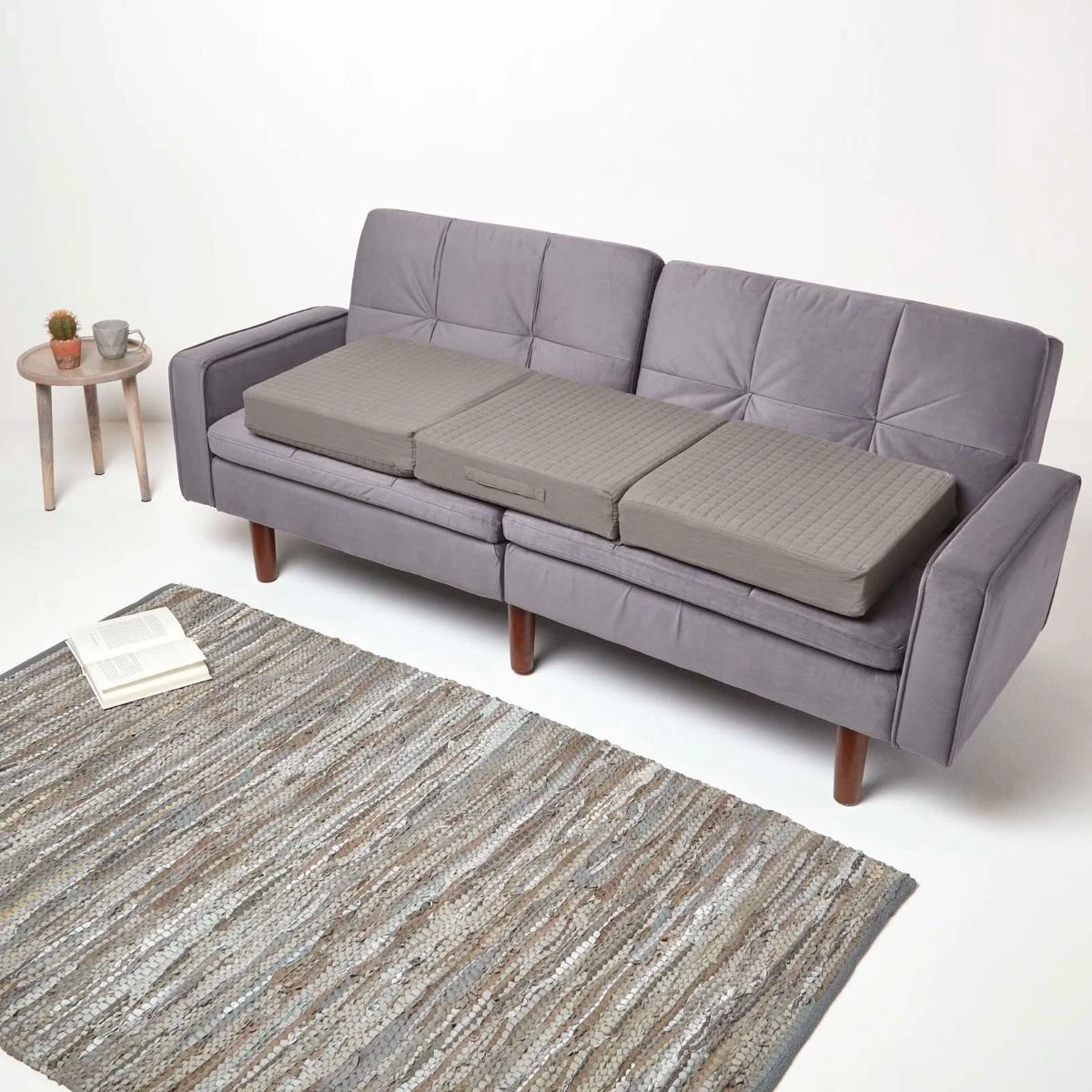 Charcoal grey extra-large 3 seater 100% cotton booster cushion with removable quilted cover, firm and supportive orthopaedic foam filled seat cushion for the elderly and pregnant women.