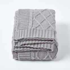 100% cotton grey throw available in two generous sizes. This cotton throw features a textured design making this chunky knit blanket ideal for your bed or sofa.