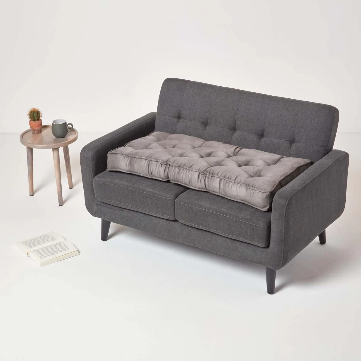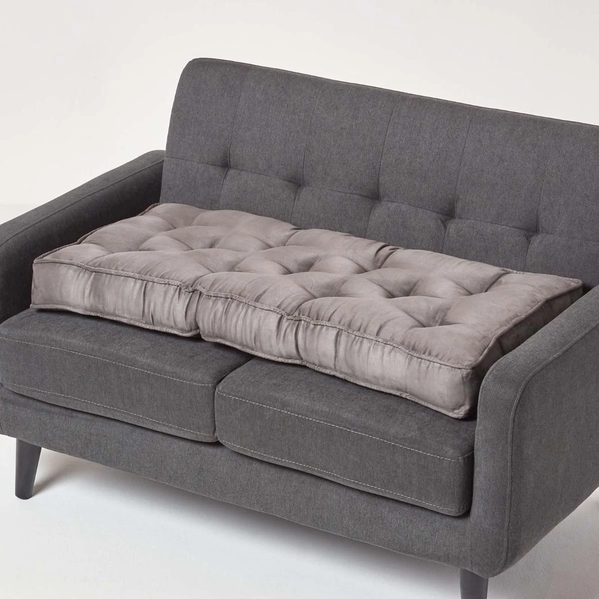 Designed to provide extra support and comfort whilst sitting, Homescapes’ grey faux suede booster cushion is available in a 2 seater size, measuring 100 cm wide. To fit standard 2 seater sofas, this booster cushion is filled with polyfibre, a supportive material that retains its shape so it will not flatten over time. Ideal for the elderly or those in recovery from surgery, it will add a 10 cm height to your 2 seater sofa.