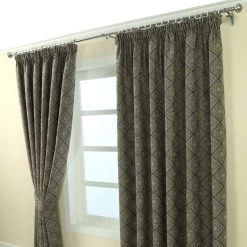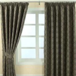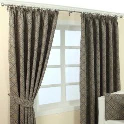 With an ornate, jacquard weave design, our readymade curtain pairs feature a geometric tile pattern with Aztec-inspired motifs. This highly-decorative design is offset by the simple, grey and natural colour scheme, making these subtle curtains an easy addition to any room in the home. Indulgent Accents These traditionally-styled drapes are fully lined for a beautiful drape and have a pencil pleated header for a classic look. Woven using high quality, carefully selected threads, these curtains bear a luxuriously glossy, subtly textured finish, making it easy to give your room an indulgent accent. Use with our matching tie-backs for a polished look.