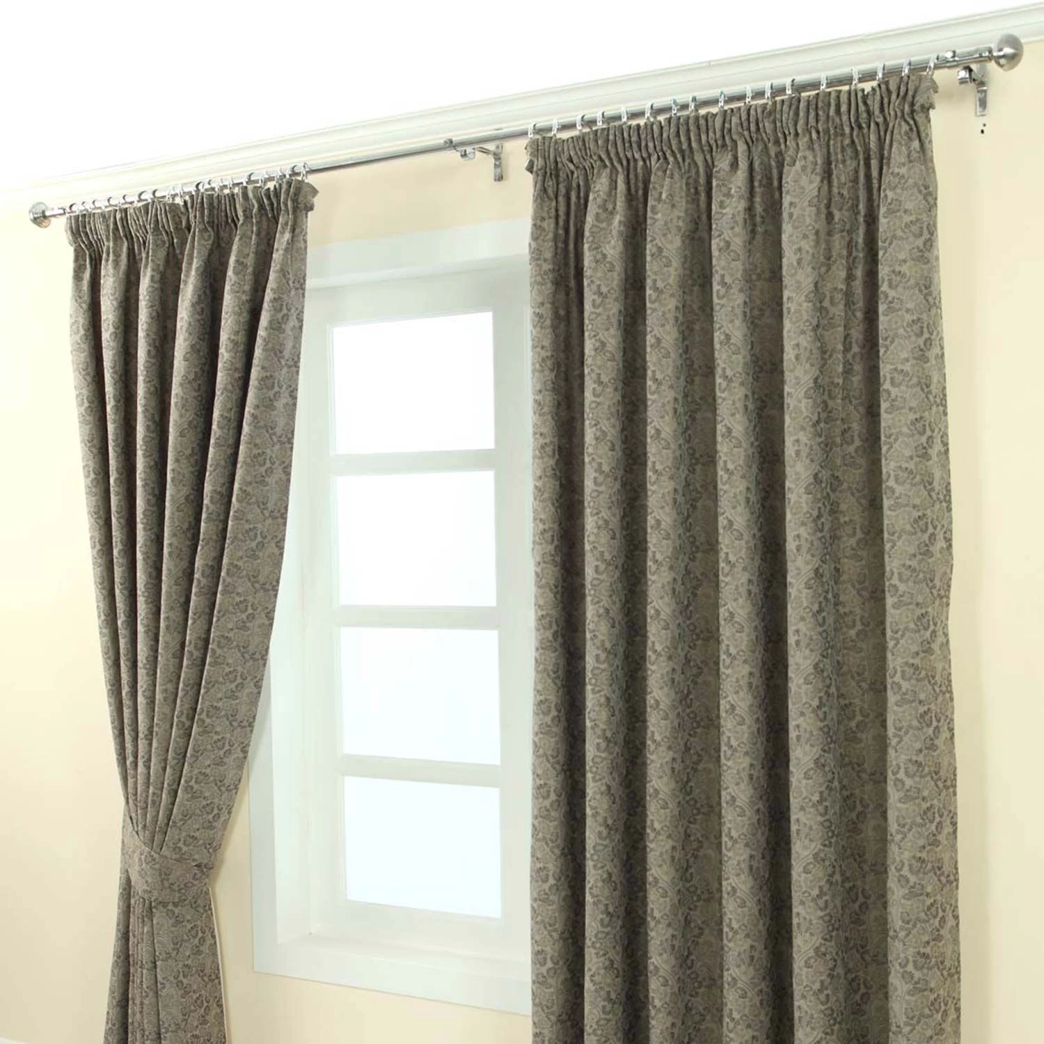 For a subtle injection of pattern, these vintage-style curtains have a full, delicate floral pattern in natural grey tones, perfect for use in grey, white or stone coloured rooms. With a pencil pleat header and a full lining for the perfect drape, these readymade curtains are traditionally styled for classic charm. Luxurious Weave This jacquard weave design is woven using high quality yarns, specially selected for their light-reflecting properties. These luxurious threads create a fabric with a light texture and shimmering finish for a classy look. For a ‘put together’ look, why not use with our matching tie-back pairs?