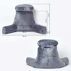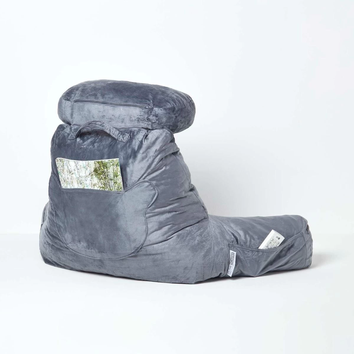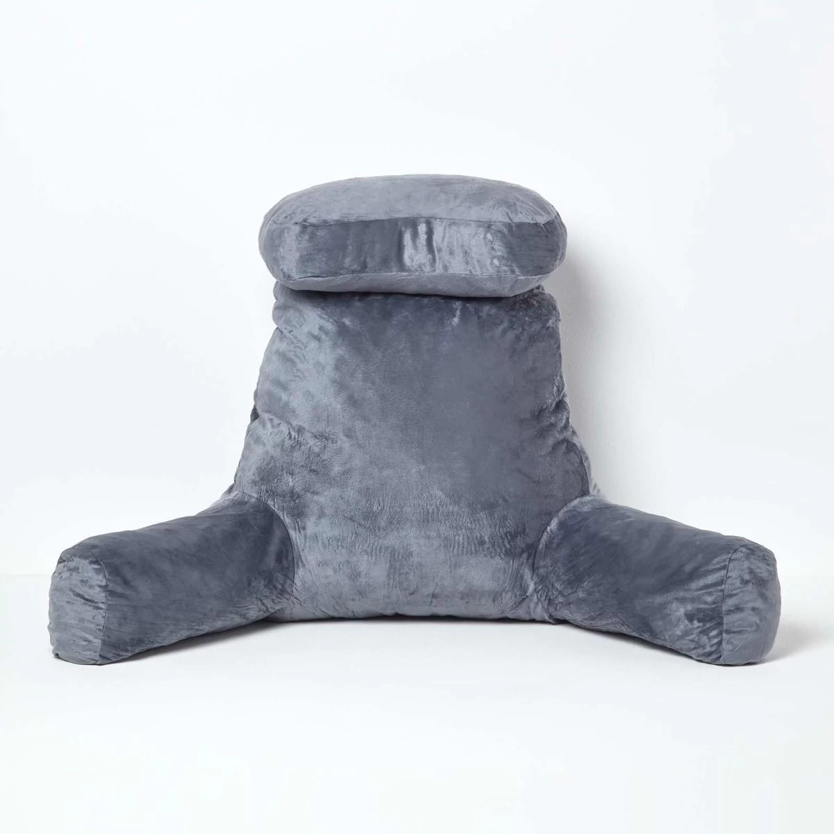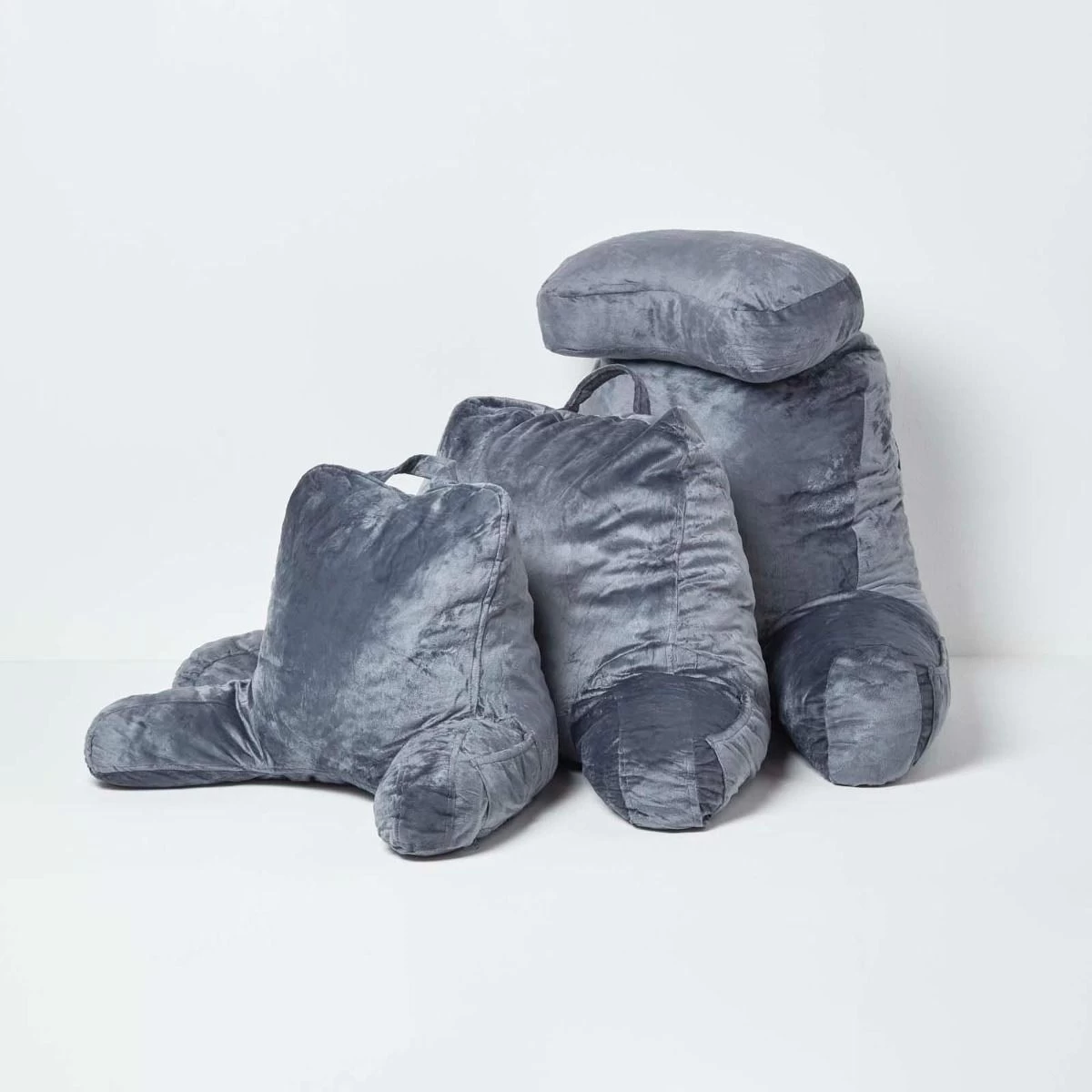 Grey Reading Pillow Memory Foam Filling & Velvet Cover, Extra Large