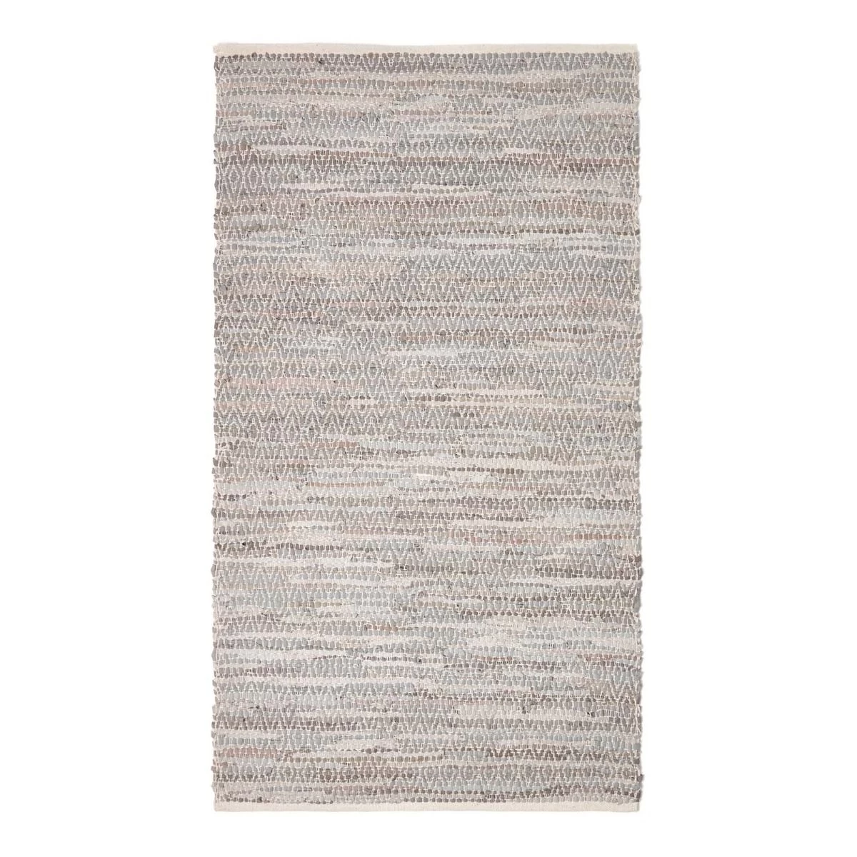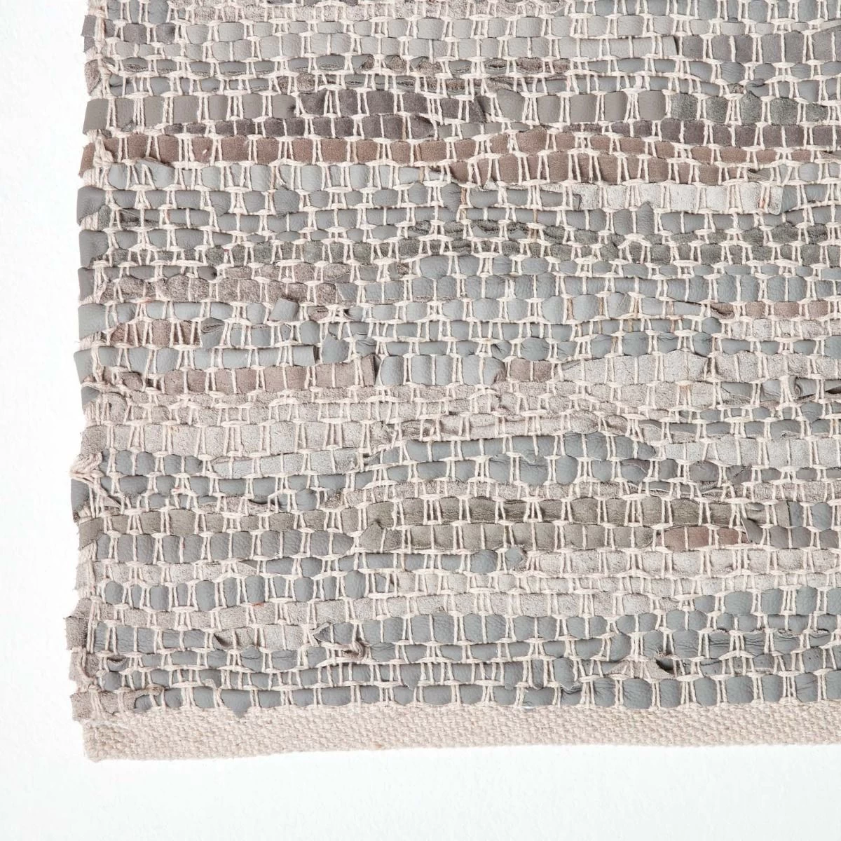 Grey handwoven leather rug, woven from recycled leather this eco-friendly rug features a modern diamond geometric design and is available in various sizes.