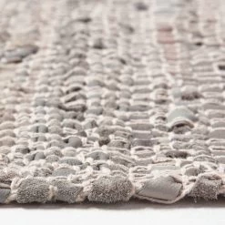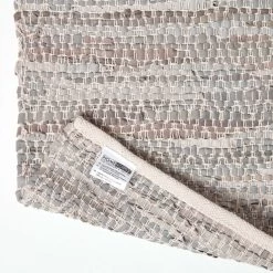 A grey leather rug, heavyweight and hardwearing, it is ideal for bedrooms and living rooms. Each rug has been expertly handwoven from eco-friendly recycled leather, to create a modern, neutral colour, home accessory.