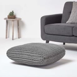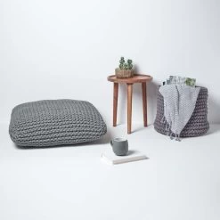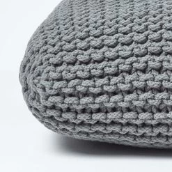 Grey Square Cotton Knitted Pouffe Floor Cushion