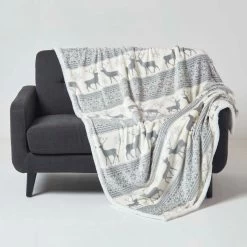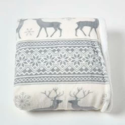 The perfect gift for Christmas and the winter season, this Christmas throw blanked has a grey and white pattern with a soft fleece-like Sherpa reverse. Easy to care for, this throw can be machine washed and tumble dried and is designed for regular daily use.