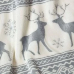 Decorative Nordic style Christmas throw blanket with stag and alpine style decoration. This grey and white throw is super soft and measures 130 x 180 cm, perfect for single and double beds or for snuggling up on the sofa. Complementing traditional, modern and Scandi style interiors, this neutral colour cosy throw will work well with all Christmas colour combinations.