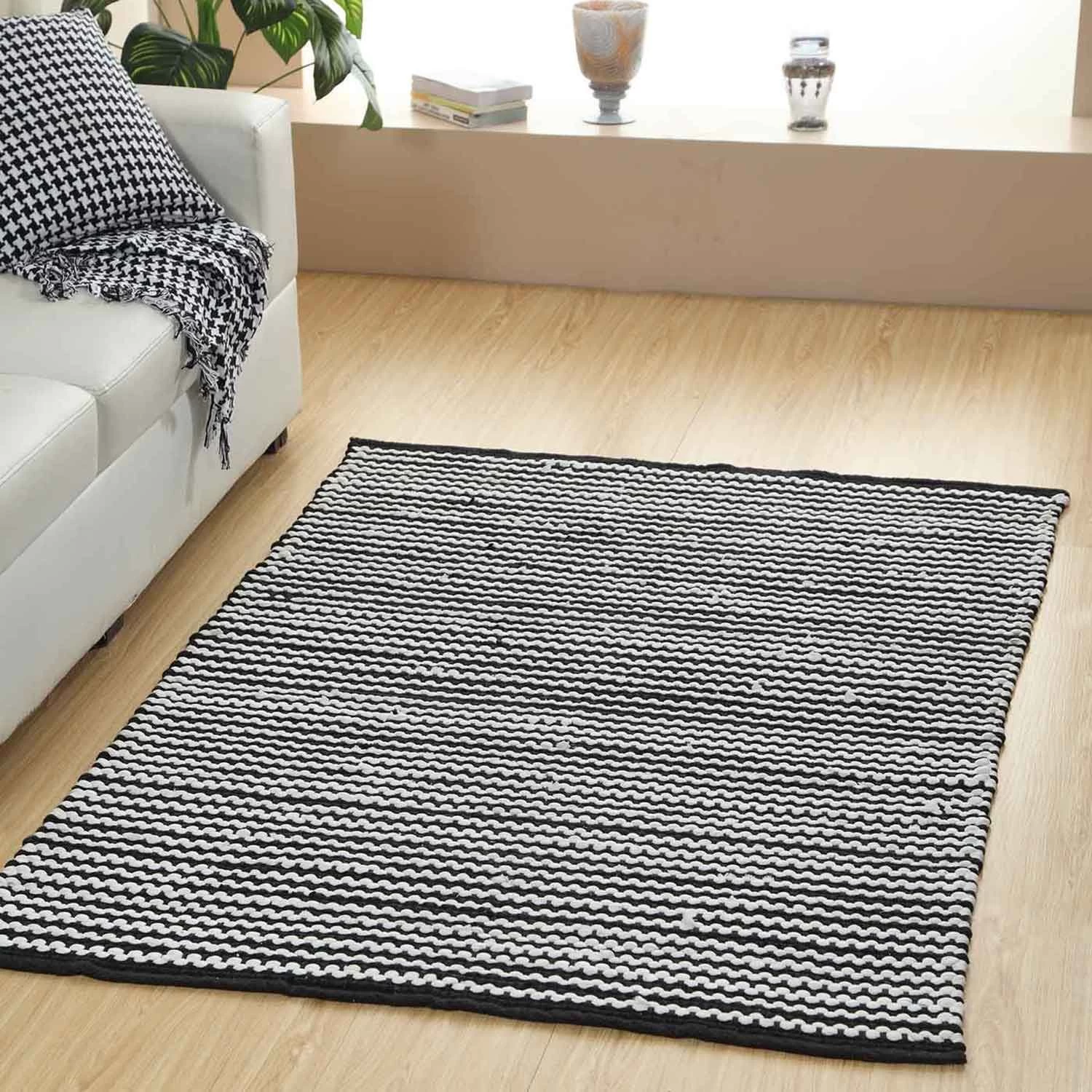 A retro style rug from Homescapes, Groove features a black and white wavy stripe and is handwoven from 100% cotton. This rug is available in four sizes including a runner.