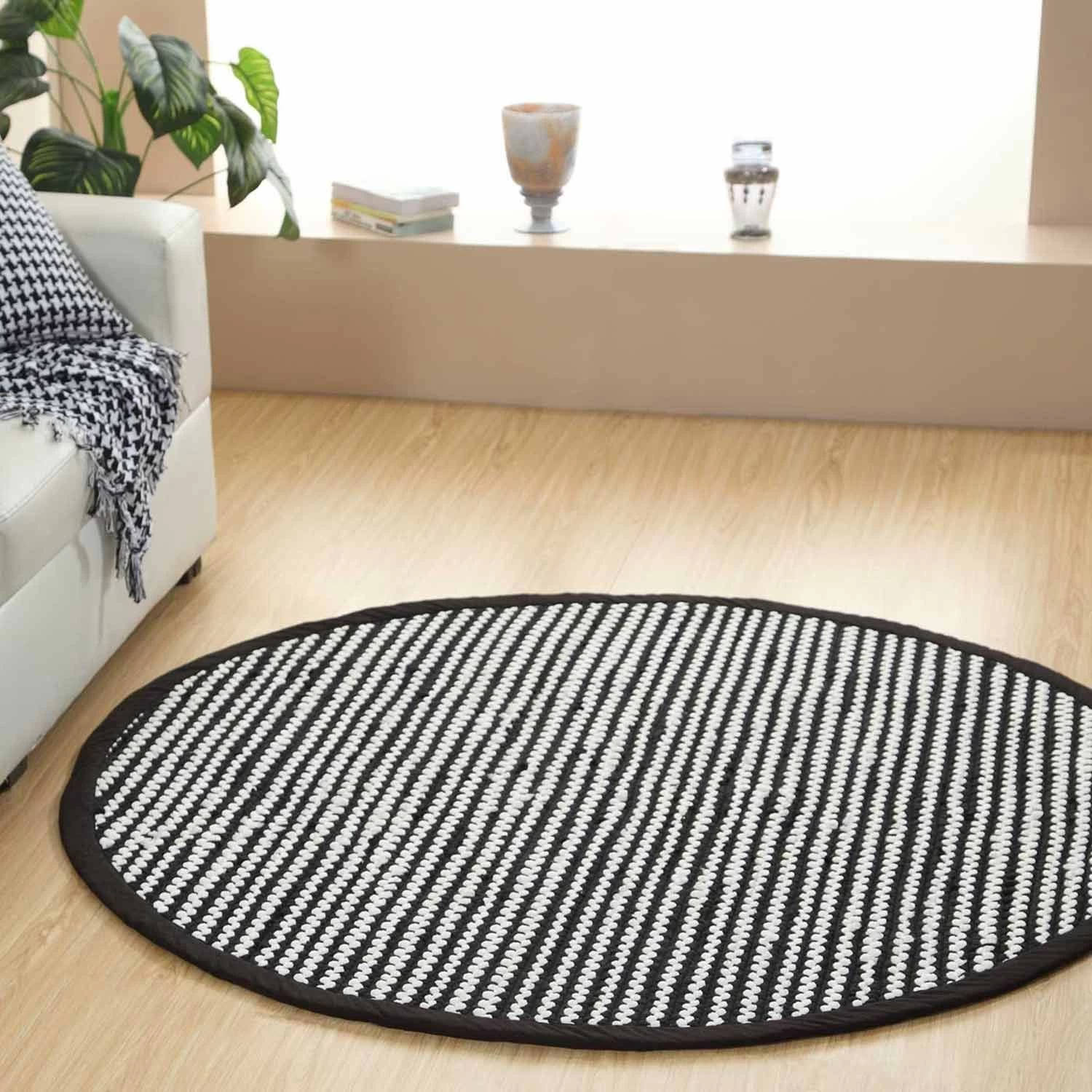 Add some retro inspired texture to your interior style with the black and white Groove rug from Homescapes. It features a wavy stripe for a laid back look, with black folded edges. Place in your living room or bedroom for a chic, contemporary addition to your home.