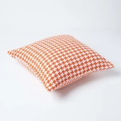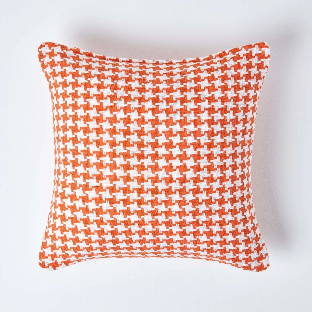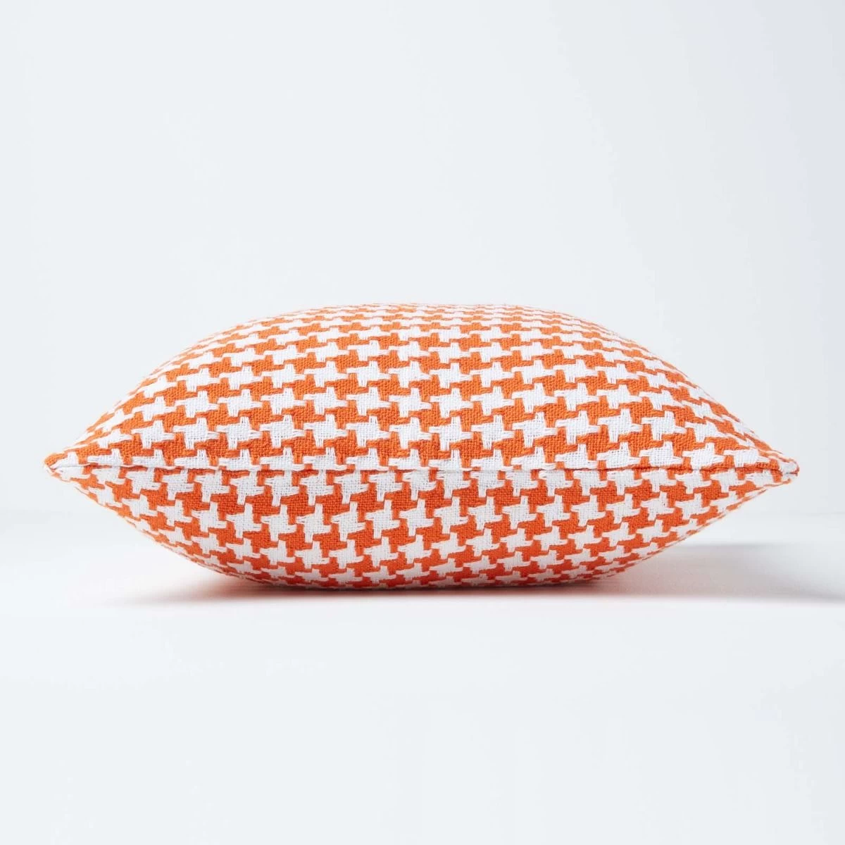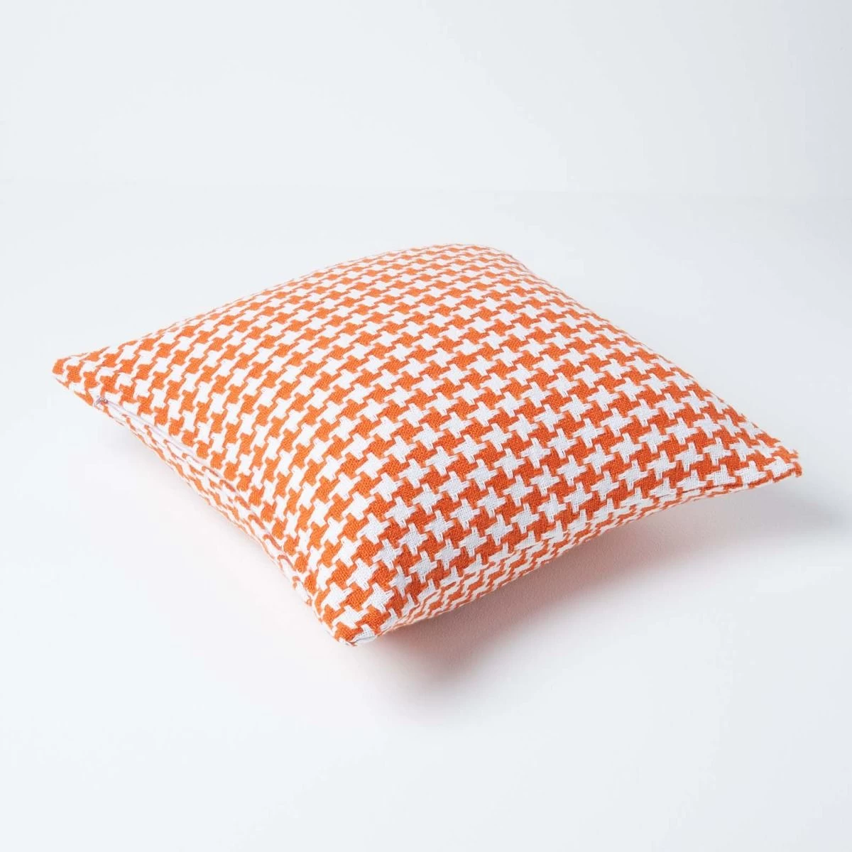 Houndstooth 100% Cotton Cushion Cover Orange, 60 X 60 Cm