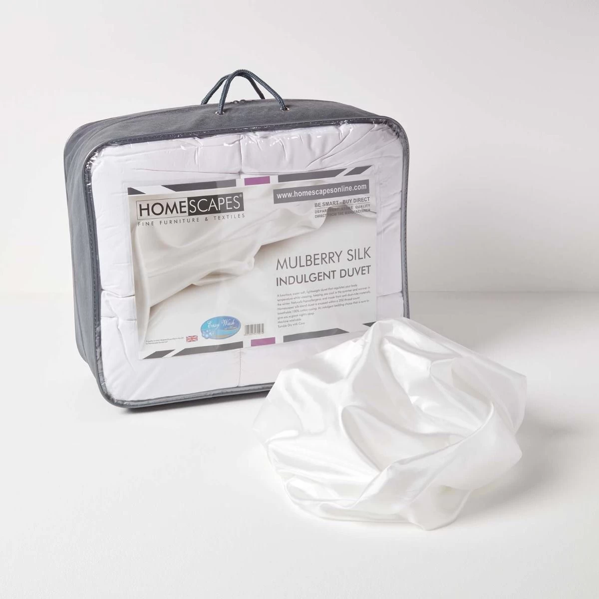 Naturally hypoallergenic, Homescapes’ pure Mulberry silk blend duvet is encased inside 100% cotton for ultimate comfort. This 13.5 Tog duvet is ideal for winter months.