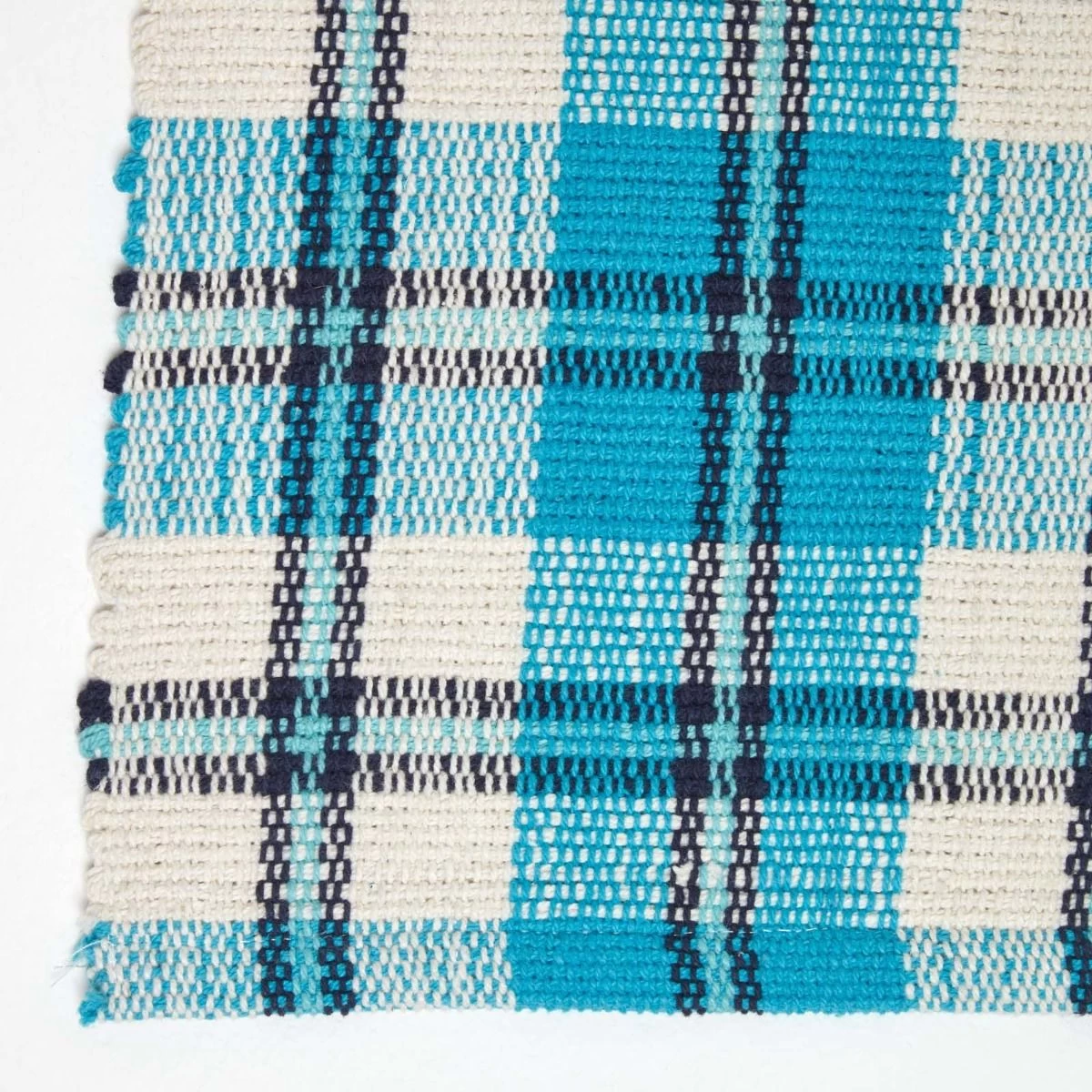 To go with the Homescapes range of tartan rugs, Irvine is bright and fresh with a light blue and white checked pattern. Woven from 100% cotton, Irvine was crafted on a traditional jacquard handloom in India. The tightly woven strands create a rug that is sturdy and durable. Irvine is available in four sizes, including a runner rug.