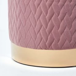 A contemporary style velvet pouffe with a retro twist, the Kensington round footstool is upholstered with a dusky pink quilted plait design sitting on a gold metal brass base. A home accessory sure to be the focus point of any room, this versatile home accessory will compliment many interior styles.
