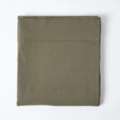 Linen flat sheet in khaki green, woven from French flax linen and blended with premium combed cotton from Homescapes’ linen bed linen collection.
