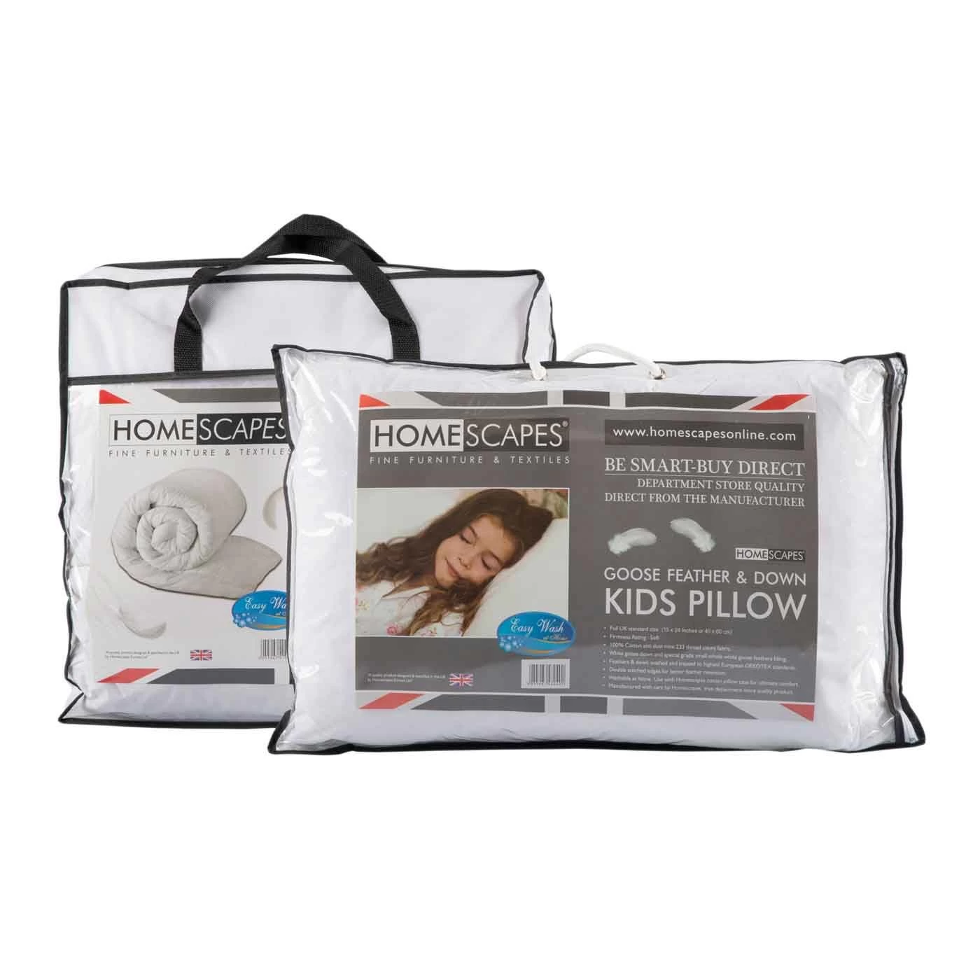 This excellent duvet and pillow set allows your child to experience the same night time comfort as you do. An 80% goose feather and 20% goose down filling, held together by a 260 thread count, 100% cotton casing means that this bedding set is top quality. The natural filling makes for an extremely soft and light weight cover to keep your child warm through the cold hours of the night. All of Homescapes natural fillings are treated extensively to ensure the removal of pathogens, and are coupled with a high thread count cotton casing that bears anti-dust mite properties; this set highly reduces the risk of allergens to allergy sufferers.