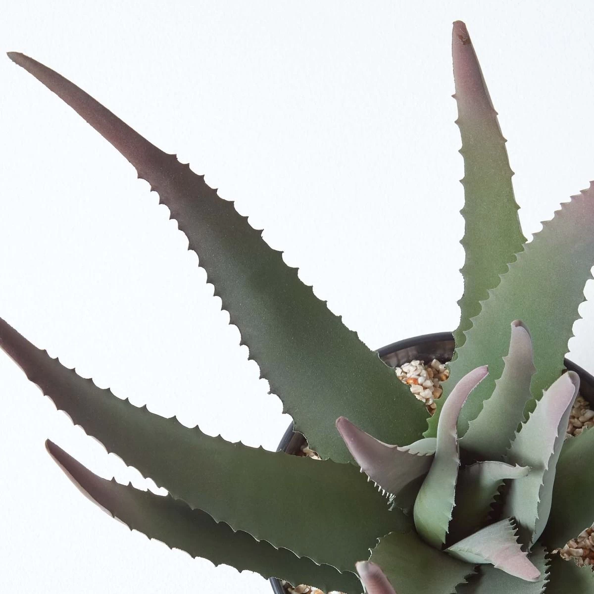 Create a natural finishing touch in your home with this tall artificial Aloe Vera plant from Homescapes. Featuring several lifelike stems of Aloe Vera, this faux plant is set inside a black pot that has artificial gravel to create an authentic look. Each leaf has a burgundy tone for a realistic look.