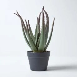 As with all of Homescapes’ artificial flowers, plants and trees, this faux Aloe Vera plant has been carefully crafted by hand to ensure that it looks realistic and lifelike. Set inside a black plastic pot, you can display this faux plant in your own decorative vase. Also available in a smaller size.