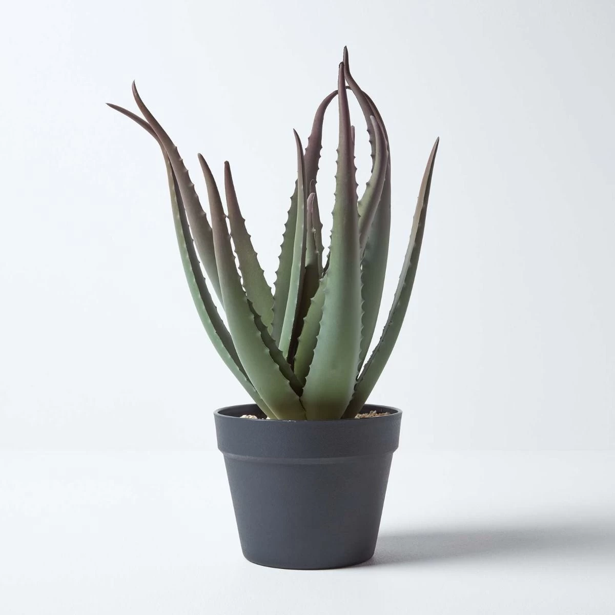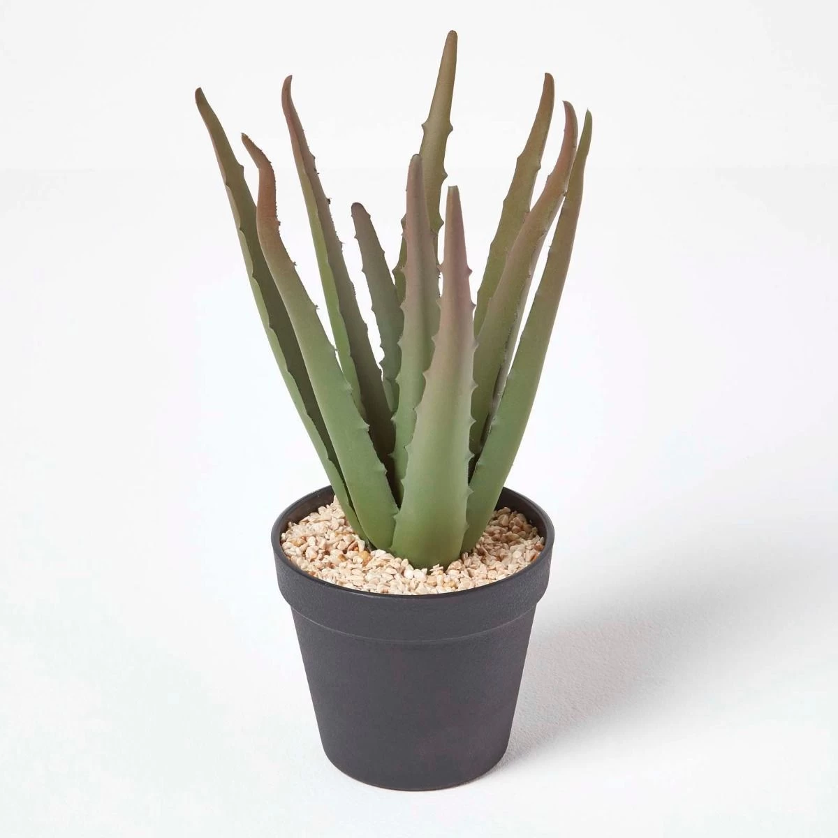 As with all of Homescapes artificial flowers, plants and trees, this faux Aloe Vera plant has been carefully crafted by hand to ensure that it looks realistic and lifelike. Set inside a black plastic pot, you can display this faux plant in your own decorative vase. Available in a two sizes.