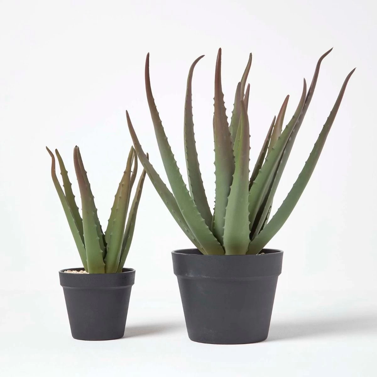 Create a natural look in your home with these tall artificial Aloe Vera plant from Homescapes. Measuring approximately 30 cm and 45 cm tall.