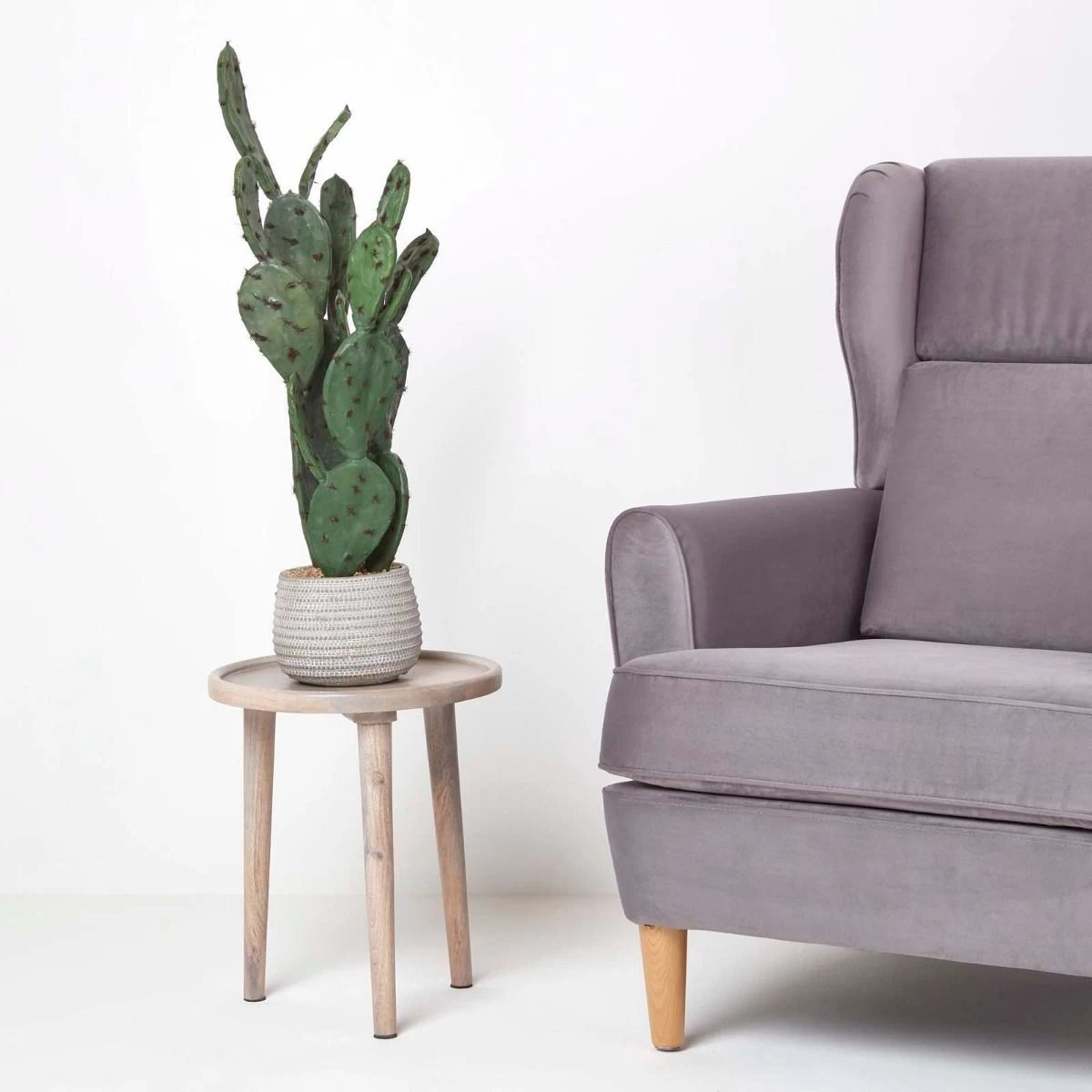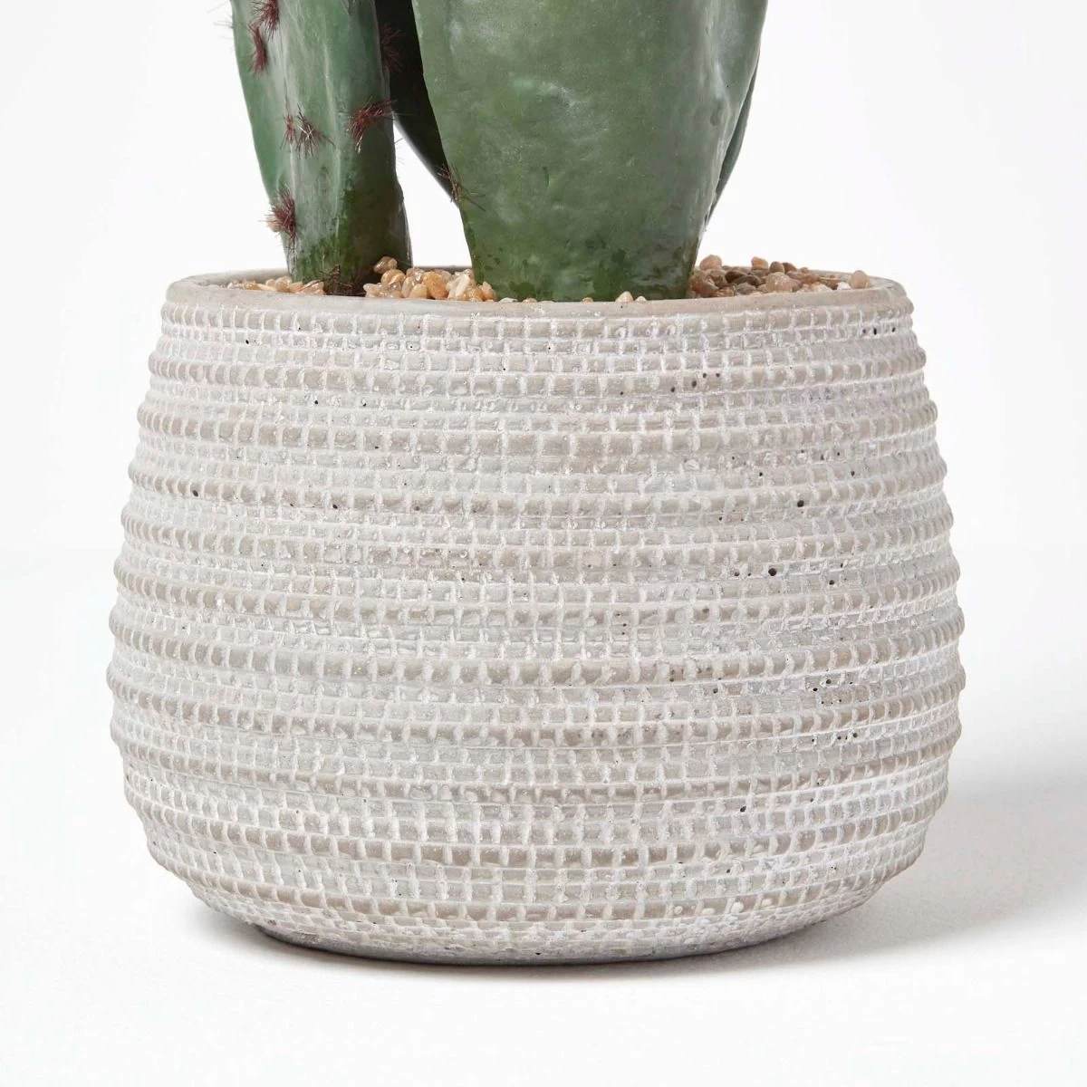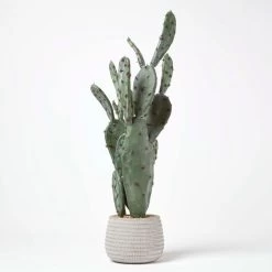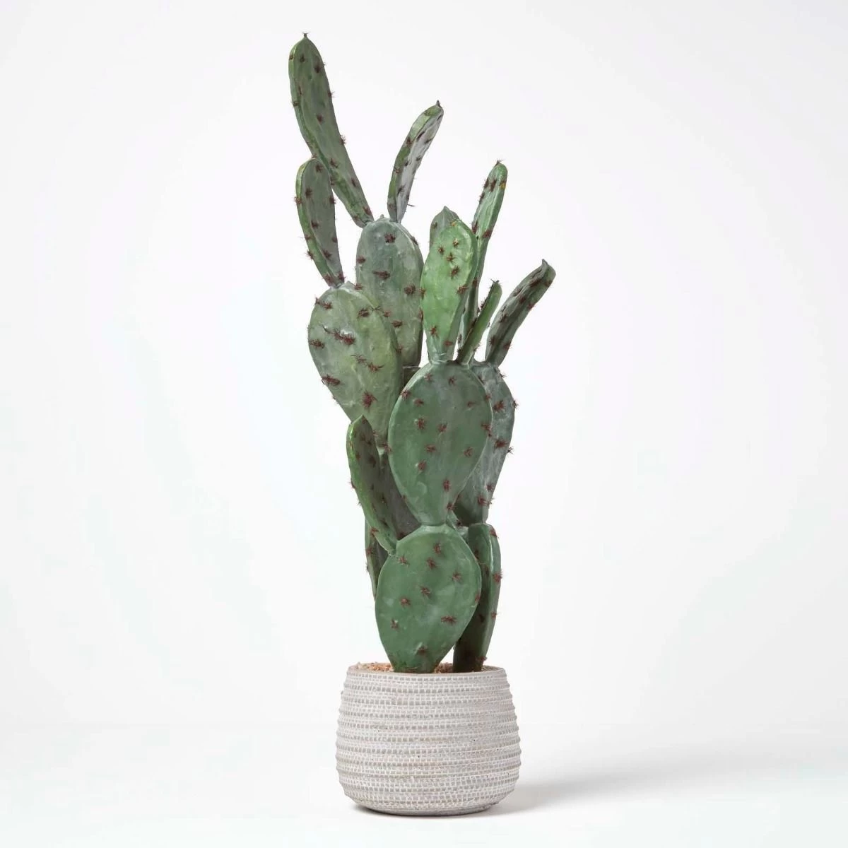 Artificial Bunny Ear cactus plant from Homescapes, set inside a decorative cement pot. Measures approximately 50 cm tall.