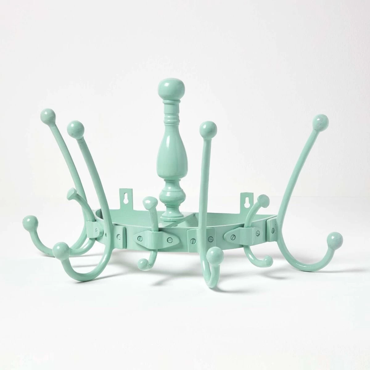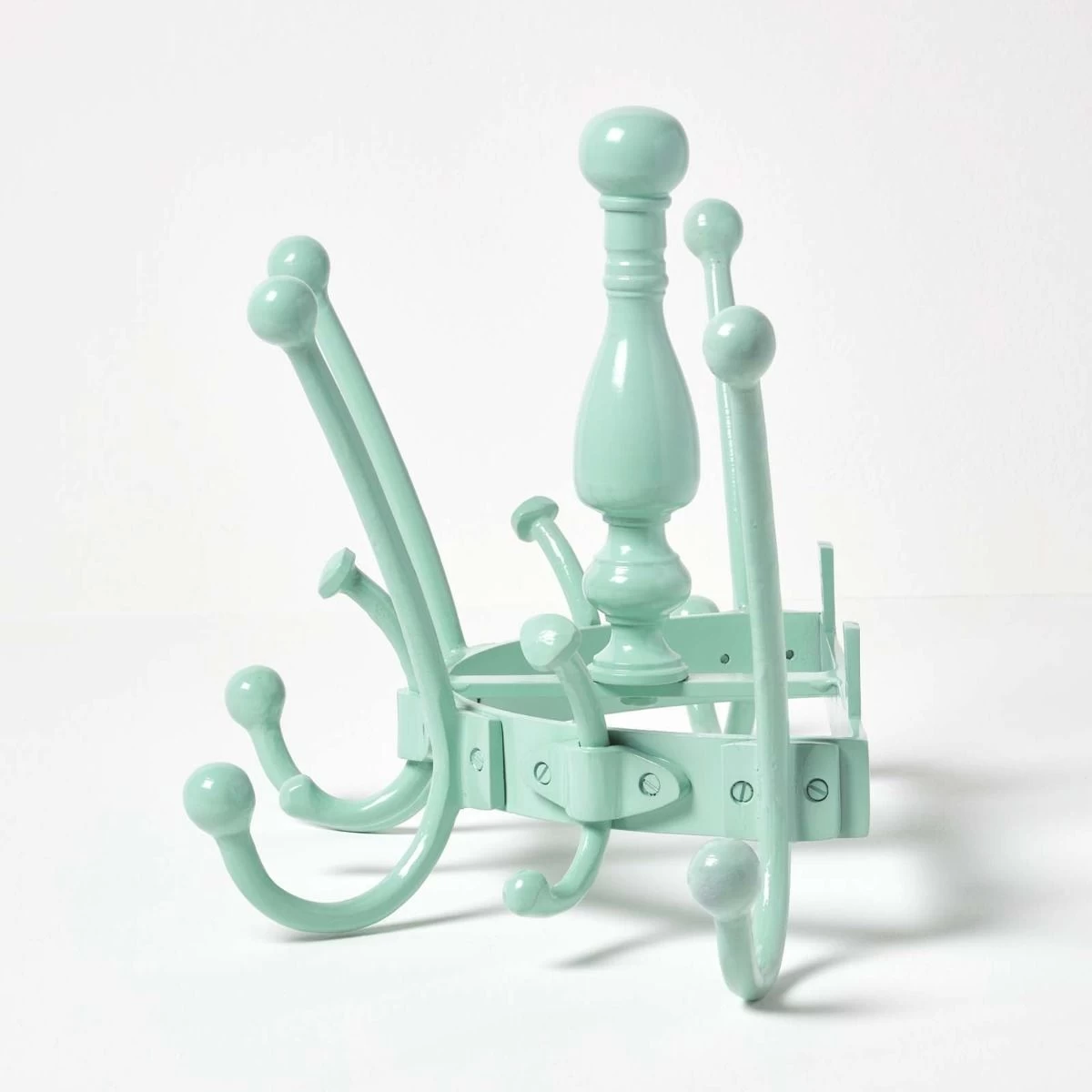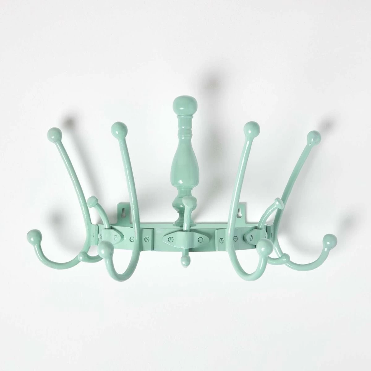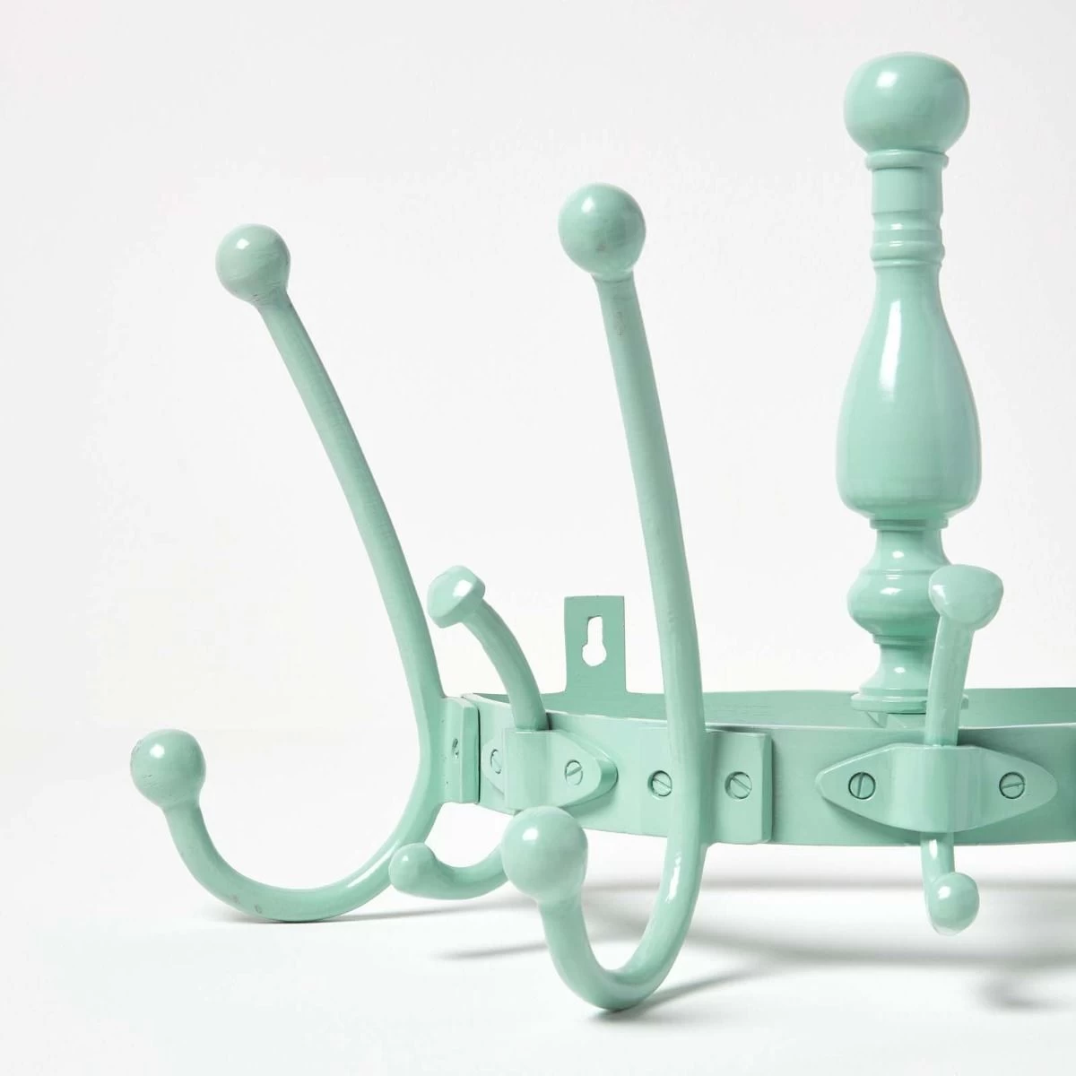 Add a touch of style to your home with this shabby chic decorative coat rack made of 100% solid Aluminium featuring 7 hooks in a vintage mint colour.