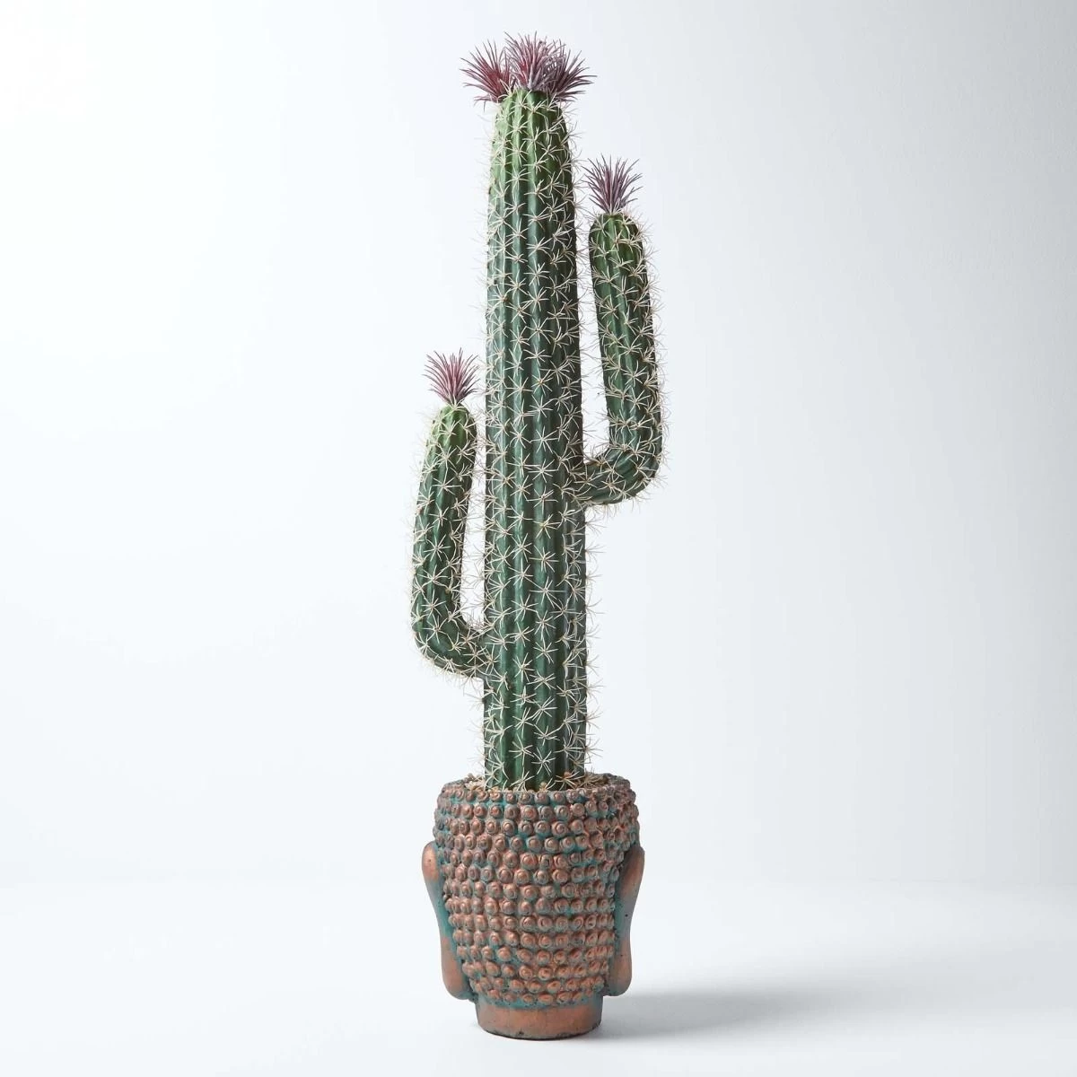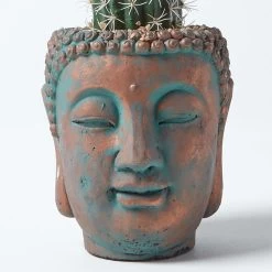 Decorate your living room, bedroom and side tables with Homescapes’ artificial Saguaro cactus plant. This large fake succulent measures approximately 78 cm tall and is set inside a vintage style Buddha head for a Bohemian look in any room of your house.