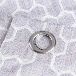 Lilac curtain pair from Homescapes featuring a stylish geometric design. Lined with 3 pass blackout lining to block out street lights and daylight.
