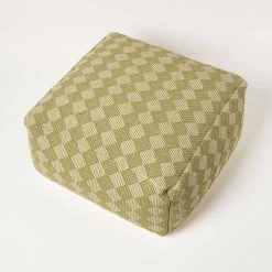 Lima handwoven bean bag pouffe in ochre green. An on-trend green footstool with a luxurious 100% cotton cover over a sturdy polystyrene filling, designed to be a durable and stylish home accessory.