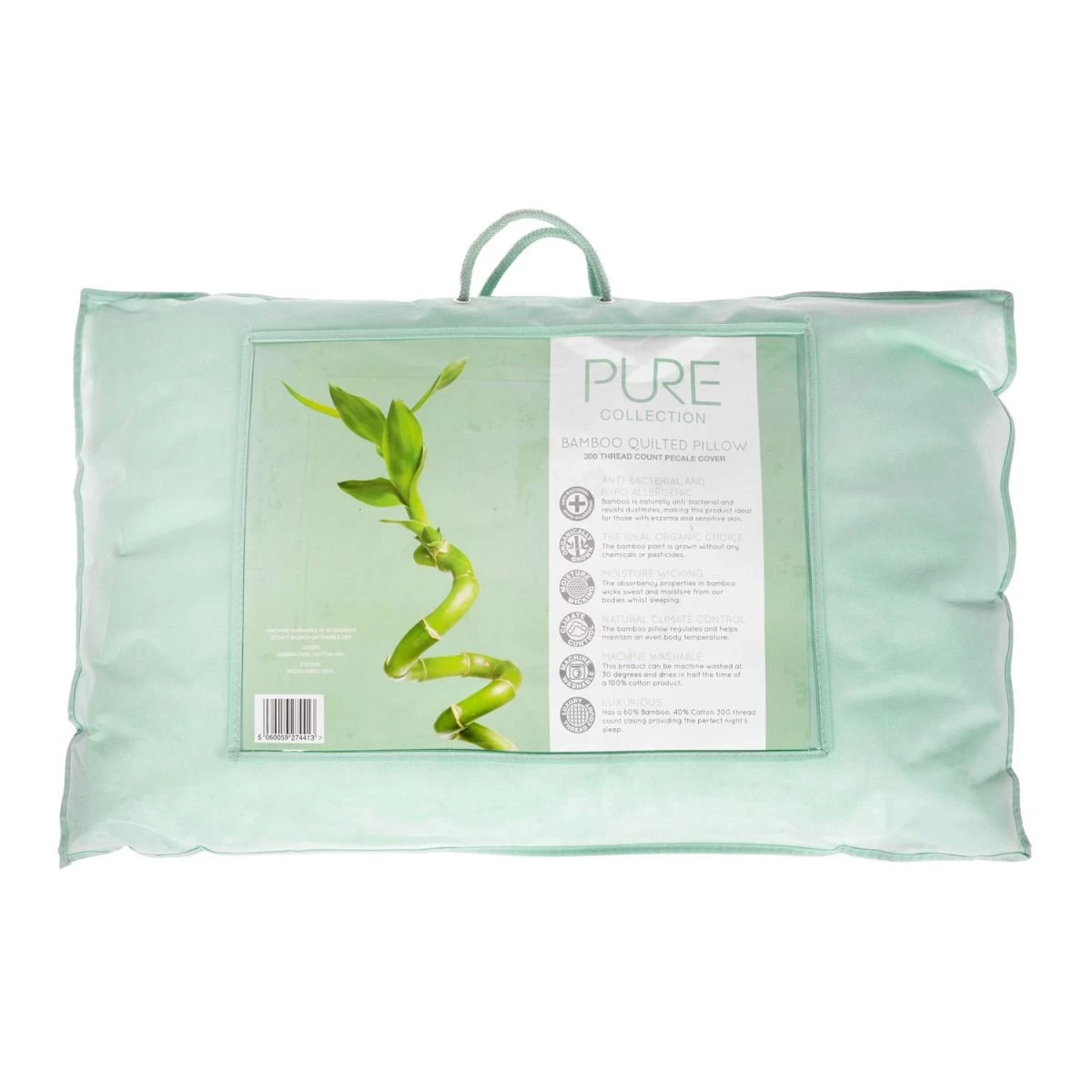 The quilted outer casing of this high quality pillow is made from an opulent blend of organic bamboo and cotton fibres, providing a soft, hypoallergenic sleeping surface. Naturally anti-bacterial and dust mite resistant, bamboo also absorbs excess moisture while you sleep, helping to keep your body temperature regulated for an indulgent, undisturbed rest. This pillow is washable at home using a domestic washing machine at 30°C. Air dry only. Do not bleach.